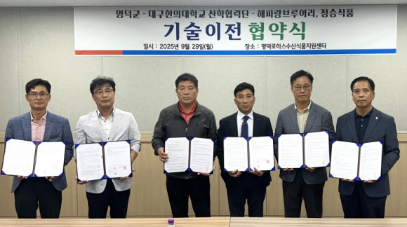 영덕군과 로하스수산식품지원센터를 위탁 운영하는 대구한의대학교 산학협력단, 그리고 관내 농산물법인 해파랑브루어리와 수산물업체 정승식품이 지난 29일 산·학·연·관 간 기술이전 협약을 체결했다.이번 기술이전은 영덕군이 ‘영덕로하스 거점 단지 활성화 사업’을 통해 해양자원의 고부가가치를 높이는 기술개발을 진행해 온 결과로, 관내 기업의 경쟁력 강화와 지역 경제 활성화에 이바지할 것으로 기대된다.이로써 대구한의대학교 산학협력단이 개발하고 영덕군이 소유한 논알코올 맥주맛 음료 제조법과 특허가 해파랑브루어리에, 대게만능스프와 대게어묵탕밀키트 제조법이 정승식품에 이전된다.논알코올 맥주맛 음료는 영덕의 특산물인 돌미역을 이용한 제품이며, 대게만능스프와 대게어묵탕밀키트는 살균 건조된 영덕대게살이 첨가된 제품이다.해파랑브루어리는 영덕주조와 협업하여 지역특산물을 이용한 수제맥주 등을 생산하고 있으며, 이번 기술이전을 통해 영덕주조와의 협업으로 논알코올 맥주를 생산하게 돼 미역을 비롯한 지역특산물을 활용한 논알콜 수제맥주 시장을 확장하는데 탄력이 붙을 것으로 기대된다.이어 정승식품은 홍게어묵 등의 제품을 판매하고 있는 기업으로, 이번 기술이전을 통해 대게 가공 기술을 확보하고, 영덕대게를 비롯해 지역수산물을 활용한 다양한 수산가공 제품을 선보일 계획이다.영덕군은 이번 기술이전을 시작으로 산·학·연·관 간의 지속적이고 유기적인 협력관계를 구축함으로써 관내 기업들의 효과적인 시장진출과 성장을 돕고 지역경제 활성화의 동력으로 삼겠다는 방침이다.나아가, 풍부한 지역 수산자원을 활용한 새로운 식품산업의 모델을 구축하고, 해양 바이오 기반 융복합 제품 개발의 가능성 확대해 가면서 지속 가능한 해양·수산 산업을 키워간다는 포부다.김광열 영덕군수는 “지역의 수산식품 산업은 고부가가치화를 통해 질적 성장을 해 나가야 하는 중요한 시점에 있다”며, “풍부하고 질 높은 지역수산물을 활용한 제품 연구개발을 적극적으로 지원하고 관내 기업과의 협력 체계를 더욱 공고히 해 산업 경쟁력을 확보해 나갈 것”이라고 밝혔다.