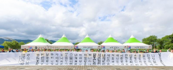 제579돌 한글날을 맞아 한글의 우수성과 세종대왕의 애민정신을 되새기는 뜻깊은 행사가 성주의 푸른 성밖숲에서 열렸다.10월 9일 오전 10시부터 정오까지 성밖숲 광장에서 열린 `한글의 혼, 붓 끝에 담다` 행사는 경북문화재단이 주최하고 (사)한국서예협회 성주지부가 주관했으며, 경상북도가 후원했다.이번 행사는 ‘2025 지역문화예술활성화지원사업’ 공모 선정사업으로, 세종대왕자태실이 있는 성주에서 한글의 창제 정신을 기리고 지역민이 함께 한글의 아름다움을 체험하는 자리로 마련됐다.현장에는 ‘서예 써 보기’, ‘부채 글쓰기’, ‘에코백 예쁜글 쓰기’ 등 무료 체험 부스가 운영되어 가족 단위 방문객과 관광객의 참여로 활기를 띠었다. 특히 길이 수십 미터에 달하는 대형 천 위에 붓으로 ‘훈민정음 서문’을 쓰는 서예 퍼포먼스가 펼쳐져 세종대왕의 뜻을 되새기며 큰 호응을 얻었다.이날 행사에는 지역 서예인과 군민, 관광객 등 100여 명이 참여해 한글의 창제 의미를 함께 나누었다. 한 시민은 “직접 붓으로 한글을 써보니 그 소중함이 더 크게 느껴졌다”며 “아이들과 함께한 뜻깊은 시간이었다”고 말했다.행사를 주관한 한국서예협회 성주지부는 2014년 창립 이후 서예문화 확산과 인재 발굴에 힘써오고 있으며, 올해 경상북도 서예대전에서 11명이 입상하는 성과를 거두었다. 이어 지난 9월 ‘성주역사인물선양 전국휘호대회’, 11월 ‘성주지부 회원전’ 등 활발한 활동을 이어갈 예정이다.이병환 성주군수는 “세종대왕자태실이 있는 성주는 한글 창제 정신을 가장 깊이 간직한 곳”이라며 “이번 행사를 통해 군민이 한글의 아름다움과 서예의 예술성을 느끼며 문화적 자긍심을 높이길 바란다”고 말했다.