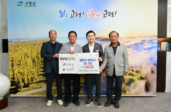 한국농촌지도자 고령군 연합회(역대 회장 이기용)에서 10월 13일(월) 고령군청을 방문하여 함께모아 행복금고 성금 100만원을 기탁했다. 한국농촌지도자 고령군 연합회(역대 회장 이기용)는 2025년 9월 18일 “농촌지도자 경상북도 대상”을 받았으며 수상의 기쁨을 이웃과 함께 나누고자, 이번 대상 수상으로 받은 상금 100만원 전액을 고령군에 기탁했다.기탁된 성금은 고령군 관내의 어려운 이웃과 저소득 계층을 위해 소중하게 사용될 예정이며, 지역사회에 따뜻한 온기를 불어넣는 계기가 될 것으로 기대된다. 한국농촌지도자 고령군 연합회(역대 회장 이기용)에서는“힘든 상황에 있는 어려운 이웃들이 좌절하지 않고 힘을 얻도록 작은 보탬이 되기를 바란다.”고 말했다. 고령군(군수 이남철)은“지역사회에 따뜻한 나눔을 실천해 주신 점에 깊이 감사드리며 기탁해 주신 소중한 마음이 어려움을 겪는 이웃들에게 온전히 전달되도록 하겠다.”고 말했다.