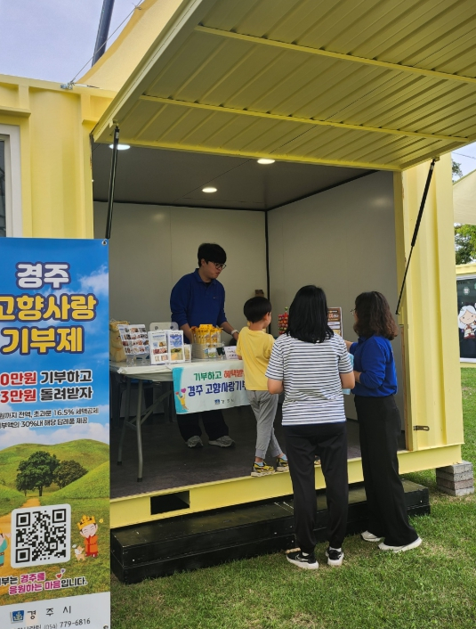 경주시는 지난 10일부터 12일까지 열린 제52회 신라문화제 현장에서 ‘경주 고향사랑기부제’ 홍보 부스를 운영했다고 밝혔다.이번 부스는 시민과 관광객에게 고향사랑기부제의 취지와 혜택을 알리고, 경주 지역 답례품을 홍보하기 위해 마련된 것으로, 많은 방문객들의 관심을 모았다.홍보부스에는 경주시청 고향사랑팀 직원들이 직접 참여해 경주시 답례품을 전시하고 리플릿과 홍보물품을 배부하며 적극적인 홍보활동을 펼쳤다.또한 현장 기부 이벤트를 진행해 기부자에게 ‘첨성이 인형’ 또는 ‘커피 모바일 카드(2만원권)’를 증정해 관람객들의 큰 호응을 얻었다.주낙영 경주시장은 “신라문화제를 찾은 시민과 관광객 여러분께서 고향사랑기부제에 많은 관심을 보여주셔서 감사드린다”며, “앞으로도 축제와 각종 행사 현장을 찾아가는 홍보활동을 강화해 더 많은 분들이 경주에 따뜻한 마음을 보내주실 수 있도록 하겠다”고 밝혔다.