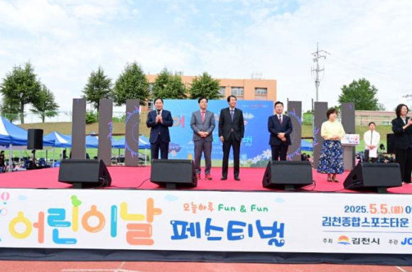 김천시는 제103회 어린이날을 맞아 5월 5일 김천종합스포츠타운 보조경기장에서 5,000여 명이 참가한 가운데 `2025 김천시 어린이날 페스티벌`을 개최했다.이번 행사는 김천시가 주최하고 동김천청년회의소가 주관하는 행사로, `오늘하루 fun & fun 페스티벌`이라는 부제로 어린이와 온 가족이 함께 즐길 수 있는 다양한 프로그램을 운영했다.기념식에서는 아동권리헌장 낭독, 모범어린이 표창 수여, 희망과 꿈을 담고 미래로 가자는 뜻을 담은 비행기 날리기 퍼포먼스, 기념공 선물 시간을 가졌다.식후 행사에서는 독도 플래시몹, 오징어게임, 태권도 시범, 댄스·밴드 공연, OX퀴즈, 마술 공연 등 다양한 축하공연이 펼쳐졌다. 이 외에도 에어바운스, 클라이밍·소방·싸이카 체험, 네일아트, 페이스페이팅, 오삼이 포토존 등 24개 기관에서 홍보 및 체험 부스를 운영하여 행사장을 찾은 어린이들에게 행복한 시간을 제공했다.배낙호 김천시장은 ˝어린이날을 진심으로 축하하며, 우리의 희망이자 미래인 어린이들이 건강하고 행복하게 자라날 수 있도록 많은 사랑과 관심을 부탁드린다. 시에서도 어린이들이 마음껏 꿈과 희망을 펼칠 수 있도록 최선을 다하겠다.”라고 말했다.