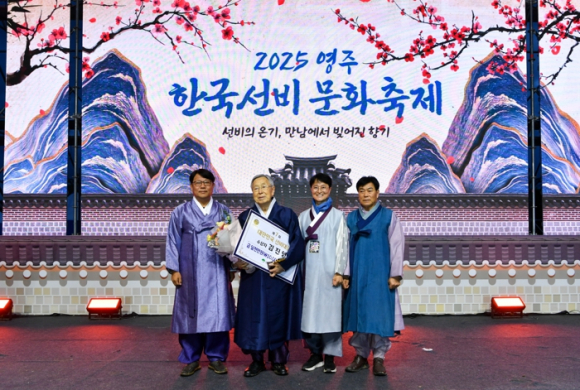 영주시는 지난 3일 문정둔치에서 열린 ‘2025영주 한국선비문화축제’ 개막식에서 김진영(86세) 영주시 국제교류협회장에게 ‘제7회 대한민국 선비대상’을 수여했다고 밝혔다.이번 시상식은 축제 개막식과 함께 1,500여 명의 시민과 유림, 내빈 등이 참석한 가운데 △수상자 선정 경과보고 △트로피 전달(이재훈 영주시장 권한대행) △시상금 전달(김병기 영주시의장, 1천만 원) △꽃다발 증정(김덕환 대한민국선비대상위원장) 순으로 엄숙하게 진행됐다.김진영 회장은 수상 소감을 통해 “이번 상은 저 개인의 것이 아니라 영주를 위해 함께 애써온 시민 모두와 함께 받는 상”이라며 “앞으로도 선비정신을 바탕으로 지역과 후세를 위한 작은 실천을 이어가겠다”고 밝혔다.또한 그는 “이번 수상으로 받은 시상금 전액(1천만 원)을 지역의 인재들이 꿈을 펼칠 수 있도록 인재 육성을 위해 써달라”며 장학금으로 기탁해 현장을 더욱 훈훈하게 만들었다.시상자로 나선 이재훈 영주시장 권한대행은 “김진영 회장님은 누구보다 선비정신의 가치와 실천을 몸소 보여주신 분”이라며 “영주의 정신적 자산을 지키고 확산하는 데 평생을 헌신해 오신 공로에 시민 모두의 존경과 감사를 전한다”고 축하의 인사를 전했다.김진영 회장은 제13대 국회의원, 초대 및 제2대 민선 영주시장을 역임하며 35년 넘게 공직과 민간에서 지역 발전을 위해 헌신해 왔다.특히 △소수서원 성역화 △선비촌·소수박물관 건립 △한국선비문화축제 창설 및 정례화 등 유교문화의 현대적 계승에 기여하며, 영주를 `선비의 고장`으로 정체화하는 데 핵심적인 역할을 수행했다.이러한 그의 발자취는 영주의 정신문화 정체성 확립은 물론, 교육·농업·경제·문화 등 다양한 분야에서 실질적인 성과로 이어졌으며, 오늘날 대한민국을 대표하는 정신문화도시로서 영주 위상을 높이는 데 크게 기여했다는 평가를 받고 있다.