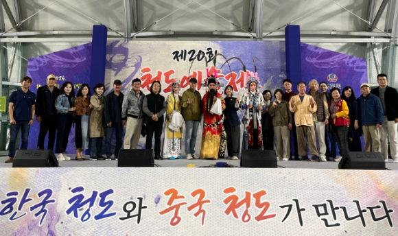 청도군이 주최하고 (사)한국예총 청도지회(회장 손만식)가 주관한 청도예술제 특별기획행사‘한중 문화예술 교류전’이 10월 17일부터 19일까지 3일간 청도반시축제장 실내테니스장에서 성황리에 열렸다.이번 행사는 한국 청도군과 중국 칭다오 예술인들이 함께한 문화예술 교류의 장으로, 시각예술 전시와 공연, 양국 특산물 홍보 등 다채로운 프로그램이 진행됐다.전시 부문에서는 (사)한국미술협회·사진작가협회·민화협회 청도지부 회원들과 중국 봉황미술관 작가들의 회화, 서예, 사진 등 100여 점의 작품이 선보여 관람객들의 발길을 사로잡았다.공연 부문에서는 양국 예술인들이 음악, 국악, 무용, 연극 등 다양한 무대를 펼쳤으며, 특히 칭다오 공연예술단의 전통 공연과 한국 예술인들의 무대가 뜨거운 호응을 얻었다.행사장에는 청도 감말랭이와 칭다오 맥주를 시음·시식할 수 있는 부스도 운영돼, 예술뿐 아니라 양국의 특산품을 함께 즐길 수 있는 체험의 장으로 큰 인기를 끌었다.또한 중국 봉황미술관 조길간(趙吉干) 대표를 비롯한 예술인 13명이 청도를 방문해 김하수 군수와 환담을 나누고, 지역 명소를 둘러보며 청도의 문화와 전통을 직접 체험했다.이번 교류전은 청도반시축제 및 청도세계코미디페스티벌과 연계해 열려, 축제장을 찾은 관람객들에게 풍성한 볼거리와 즐길거리를 제공하며 지역 축제의 품격을 한층 높였다는 평가를 받았다.김하수 청도군수는 “우리 청도와 중국 청도는 같은 이름을 가진 지역으로, 이 특별한 인연을 이번 교류전을 통해 새로운 교류의 계기로 이어가고 있다”며 “이번 행사가 양국의 문화예술 발전에 시너지 효과를 가져오고, 나아가 청도 지역 예술문화의 성장과 활력을 높이는 계기가 되길 바란다”고 말했다.