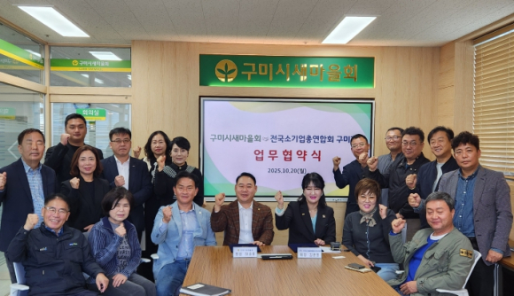 구미시새마을회(회장 하준호)와 전국소기업총연합회 구미시지부(회장 김춘희)가 지난 20일 구미시새마을회관 3층 회의실에서 지역경제 활성화와 상생협력 강화를 위한 업무협약을 체결했다.이번 협약은 양 단체가 상호 존중과 신뢰를 바탕으로 자원을 공유하고, 지속 가능한 협력사업을 발굴·추진함으로써 지역 발전과 공동 번영을 이루겠다는 뜻을 모은 것이다.협약 주요 내용은 ▲구미시 지역발전 및 지역상권 살리기 운동 협력 ▲새마을정신을 기반으로 한 새마을운동 및 교육 활성화 ▲상생과 친선을 통한 상부상조사업 추진 등이다.이날 협약식에는 하준호 구미시새마을회장과 김춘희 전국소기업총연합회 구미시지부 회장을 비롯한 양 단체 관계자 16명이 참석해 자리를 빛냈다. 협약식 이후에는 지역 상권 활성화와 상생협력 방안을 주제로 간담회가 이어졌다.구미시새마을회 하준호 회장과 전국소기업총연합회 구미시지부 김춘희 회장은 “이번 업무협약을 통해 양 단체가 가진 역량과 자원을 적극적으로 결합하여 구미 지역 경제 활성화와 새마을운동 확산에 시너지를 창출할 수 있을 것으로 기대한다”며,“앞으로도 지속적인 교류와 협력을 통해 지역 사회에 기여하겠다”고 밝혔다.한편 구미시새마을회는 새마을지도자구미시협의회, 구미시새마을부녀회, 직장공장새마을운동구미시협의회, 새마을문고구미시지부, 청년새마을연대, 새마을교통봉사대구미시지대, 구미시새마을여성합창단, 구미시새마을회산악회로 구성되어 있으며,‘함께 새마을, 미래로! 세계로!’라는 비전 아래 지역사회 발전과 새마을운동 가치 확산을 위해 활발히 활동하고 있다.