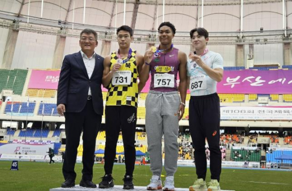 예천군 육상 직장운동경기부 나마디 조엘 진 선수가 제106회 전국체전에서 ‘스프린터 더블’(100m, 200m 동시 우승)에 이어 400m 계주에서도 금메달을 획득하며 3관왕을 달성했다.대한민국의 육상 단거리 기대주 나마디 조엘 진 선수는 19일, 100m 10초 35로 금메달을 획득했으며, 다음날 20일에는 200m에서 현역 최강자 고승환(광주광역시청) 선수를 제치고 금메달을 획득한 데 이어 21일, 400m 계주에서도 금메달을 획득하여 대한민국 남자 단거리 최강자임을 다시 한번 확인했다.앞서 조엘 진은 지난 9월 27일 홍콩에서 열린 제2회 동아시아 20세 이하(U-20)육상선수권대회 100m 예선에서 10초 26에 결승선을 통과하며, 자신의 종전 최고 기록(10초 30)을 0.04초 단축하는 등 이번 대회를 위해 철저히 준비를 해왔다.조엘 진 선수는 “지난 시즌 내내 제 장점을 극대화하고 단점을 보완하는 훈련을 계속해왔던 것이 이번 전국체전에서 좋은 결과로 이어진 것 같다”며, “초반 스타트에서 뒤처지지 않으면서, 후반 가속력을 살릴 수 있었던 것이 3관왕의 핵심이었다”고 말했다.김학동 군수는 “국내 최고의 대회인 전국체전을 위해 누구보다 열심히 준비한 우리 조엘 진 선수의 노고에 깊이 감사드리며, 이번 3관왕을 발판삼아 아시안 게임에서도 좋은 성적을 거둘 수 있도록 지원을 아끼지 않겠다”고 말했다.