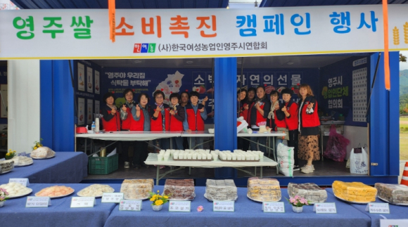 (사)한국여성농업인영주시연합회(회장 박순연)는 지난 19일, ‘2025 영주장날 농특산물대축제’ 기간 중 마련된 특별행사로 `영주쌀 소비촉진 행사`를 성황리에 개최했다.이번 행사는 지역 대표 특산물인 영주쌀의 우수성을 널리 알리고 소비를 촉진하기 위해 마련된 행사로, 떡 전시(15되) 및 시식 코너가 운영되어 방문객들이 영주쌀로 만든 다양한 떡을 직접 보고 맛볼 수 있는 기회를 제공했다.또한 ‘영주쌀 나눔 이벤트’를 통해 행사장을 찾은 관광객들에게 지역에서 생산한 쌀(300g)을 300개를 무료로 나누어주며, 영주쌀의 우수성을 알리고, 지역 경제 활성화와 농업인의 소득 증대에도 큰 도움이 될 것으로 기대된다.박순연 회장은 “한여농 영주시연합회 주관으로 진행된 이번 행사가 지역 농업인들에게 도움이 되길 바란다”며 “앞으로도 영주쌀 등 영주농산물 판매와 홍보에 혼신의 노력을 기할 것”이라고 말했다.유정근 영주시장 권한대행은 “이번 행사가 영주를 찾은 관광객들에게 영주쌀의 우수성을 알려 농가소득 증대와 쌀 소비 촉진으로 이어질 수 있을 것이라고 생각한다”며 “앞으로도 영주시는 우리 농산물 소비 활성화를 위해 최선을 다하겠다”고 밝혔다.한편, ‘2025 영주장날 농특산물대축제’는 ‘2025경북영주 풍기인삼축제’와 함께 10월 18일부터 26일까지 9일간 풍기읍 남원천 일원에서 열리고 있으며, 풍기인삼과 영주 농특산물을 주제로 다양한 체험 프로그램과 문화공연이 펼쳐지고 있다.