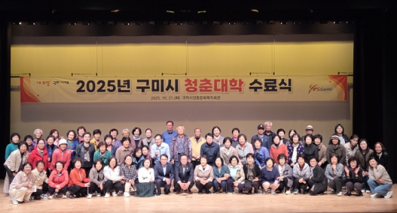 구미시는 지난 21일 강동문화복지회관에서 수료생 등 100여명이 참석한 가운데 청춘대학 수료식을 개최했다.구미 강동문화복지회관의 청춘대학은 2019년 개설, 2024년까지 총 597명의 수료생을 배출했다. 올해 150명의 수강생으로 4월 15일개강 해, 매주 화요일 다양한 분야의 전문강사를 초빙해 인문, 교양, 건강, 상식 등으로 21회 운영했다.특히 올해는 스마트폰, MZ세대와 소통, 품격있는 뉴시니어, 자세 교정과 저속노화, 노인인지 기능향상 등 새로운 강좌를 개설해 인기를 얻었다. 이 날 수료식은 자치활동에 기여한 공로로 임대식 학생회장 등 10명이 공로패, 전 학습과정을 출석한 안영화 등 9명이 개근상을 받았다. 유영익 문화예술회관장은“이번 교육과정이 수료생들에게 값진 경험이 됐기를 바라며 수업과정에서 배운 지식이 행복한 노후는 물론 지역사회 발전의 소중한 밑거름이 되길 바라며, 앞으로도 시민들이 편안하게 찾을 수 있는`열린 강동문화복지회관`이 되도록 노력하겠다”고 했다.