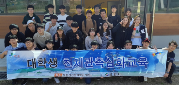 영천시 보현산천문과학관은 지난 3일부터 4일까지 인근 경북대, 영남대, 계명대 등의 대학생을 대상으로 1박 2일간의 천체관측 심화교육 프로그램을 운영했다.이번 프로그램은 천체관측 동아리 활동을 하거나 천체관측에 취미가 있는 대학생들의 천문 지식과 관측 능력 향상을 위해 마련됐다. 참가자들은 보현산천문과학관에서 천체망원경에 대한 기본 교육을 받고, 직접 망원경을 조작해 천체를 관측해 보는 체험을 진행했다.정명자 관광진흥과장은 “이번 프로그램을 통해 대학생들이 천문학에 대한 실질적인 이해를 높이길 바란다”며, “보현산천문과학관의 홍보는 물론 인적 네트워크를 구축해, 향후 천체관측 행사와 별빛축제 등에 다양한 인력 자원이 참여할 수 있길 기대한다”고 말했다.
