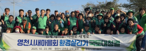 영천시새마을회는 23일 오수파크골프장 인근 금호강변에서 회원 60여 명이 참석한 가운데 ‘새마을 환경살리기 운동’의 일환으로 정화활동을 펼쳤다. 이번 활동은 아름다운 강변 경관을 되살리고, 청정한 영천의 자연을 지키기 위해 마련됐다. 이날 새마을회 회원 및 임원 60여 명은 오수파크골프장 인근의 주차장과 산책로 등 강변 곳곳을 돌며 플라스틱 용기, 음료수 병, 담배꽁초 등 버려진 생활 쓰레기를 집중 수거하고 주변 환경을 정비했다.한세현 회장은 “회원들의 꾸준한 참여와 자발적인 봉사 덕분에 영천의 하천과 산책로가 점점 깨끗해지고 있다”며, “앞으로도 시민 스스로가 지역의 자연을 지키는 ‘생활 속 환경보전 실천’을 이어가며 함께 만드는 ‘깨끗한 영천’ 구현에 앞장서겠다”고 말했다. 영천시새마을회는 지난 9월 금호읍 원제리와 은해사 일원에서도 환경정화 활동과 탄소중립 캠페인, 재활용 분리배출 홍보를 펼친 바 있다. 오는 27일에는 영천공설시장에서 일회용품 사용 줄이기와 기후위기 대응을 주제로 한 탄소중립 실천 캠페인을 전개할 예정이며, 앞으로도 다양한 환경살리기 운동을 이어갈 예정이다.