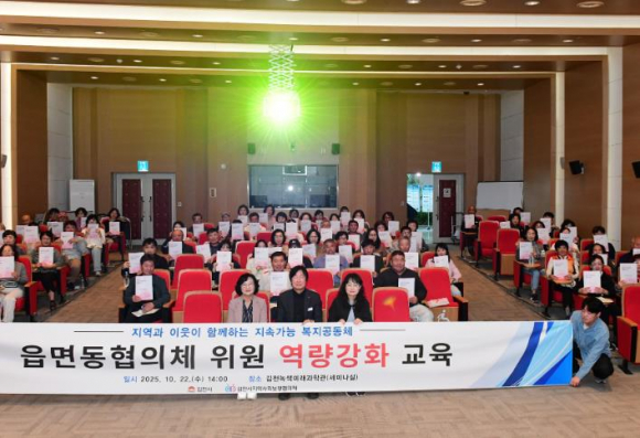 김천시는 지난 22일 김천녹색미래과학관 세미나실에서 읍면동지역사회보장협의체 위원 및 담당 공무원 90여 명을 대상으로 ‘읍면동지역사회보장협의체 역량강화 교육’을 실시했다. 이번 교육은 ‘지역과 이웃이 함께하는 지속 가능한 복지공동체 실현’을 목표로, 협의체 위원들의 역량을 강화하고 지역사회 인적 안전망을 공고히 하기 위해 마련됐다. 이날 강의는 엄미현 前 광산구청 상생복지국장(現(사)힘없는사람들의힘 공동체복지연구원장)이 맡아, ▲읍면동지역사회보장협의체의 개념과 역할 ▲지역 내 위기가구 발굴 및 지원 방안 등을 주제로 생생한 현장 경험과 실천 중심의 강의를 진행했다. 엄미현 강사는 광산구 공동체복지과장, 복지교육국장, 상생복지국장 등을 역임하며 주민주도형 복지공동체 모델을 구축한 주역으로, 복지행정과 마을공동체의 접점을 넓혀온 현장 전문가다. 특히 저서 `우리 동장이 수상해(2022)`를 통해 현장 중심의 복지 행정 철학과 마을 중심의 돌봄 가치를 공유하며 많은 공감과 호평을 받은 바 있다. 임재춘 복지기획과장은 “읍면동협의체는 행정이 닿지 못하는 복지의 사각지대를 가장 먼저 발견하고 이웃의 손을 잡아주는 지역 복지의 최일선이다. 이번 교육이 위원 한 분 한 분이 지역의 복지 리더로 성장하는 소중한 밑거름이 되길 바란다.”라며, “앞으로도 협의체가 중심이 되는 ‘생활 속 복지공동체’를 실현하고, 시민이 체감할 수 있는 김천형 맞춤 복지 모델을 만들어가겠다.”라고 말했다. 김천시는 이번 교육을 통해 읍면동 협의체가 주민이 주체가 되는 복지 실행 거점으로 자리매김할 수 있도록 지원을 강화하고, 위기가구 조기 발굴 및 민·관 협력 기반의 복지안전망을 더욱 촘촘히 구축해 나갈 계획이다.