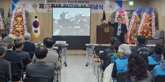 영천시재향군인회는 28일 향군회관에서 정한송 경북남부보훈지청장 등 120여 명이 참석한 가운데 ‘제73주년 재향군인의 날 기념행사’를 개최했다.이날 행사는 식전 안보강연을 시작으로 ▲국민의례 ▲향군인의 다짐 낭독 ▲향군발전에 공헌한 회원에 대한 유공자 표창 ▲기념사 및 축사 순으로 진행됐다. 특히 조규창 회장은 호국의식 고취와 국가사회 발전에 기여한 공로로 국무총리상을 수상하며 지역사회에 귀감이 됐다.재향군인회는 제대군인을 회원으로 하는 우리나라 대표적인 안보단체로, 영천시재향군인회는 학생들에게 국가안보 중요성과 호국정신 함양을 위한 나라사랑 호국안보스쿨 운영, 6.25 참전유공자 1:1 위로행사 추진, 영천호국원에서의 호국영령 추모 및 묘비 닦기 봉사활동 등 다양한 활동을 통해 지역발전에 크게 기여하고 있으며, 시민들의 호국안보의식 함양은 물론 국가유공자 보훈 선양에도 앞장서고 있다.조규창 회장은 “재향군인회는 향군의 정신을 계승하며 국민 안보의식과 나라사랑의 마음을 널리 알리는 데 앞장서고 있다”며, “앞으로도 지역사회 발전과 국가 안보에 기여하는 향군이 되도록 최선을 다하겠다”고 말했다.최기문 영천시장은 “지역 안보의 최일선에서 굳건히 나라를 지키며, 각종 봉사활동과 사회공헌을 통해 시민과 함께해 온 재향군인회가 있기에 오늘의 대한민국이 존재한다”며, “앞으로도 영천시는 향군회원 여러분의 자긍심이 더욱 높이 빛날 수 있도록 최선을 다하겠다”고 말했다