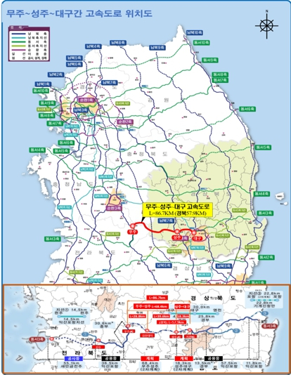 경상북도는 영호남을 잇는 지역의 숙원인 무주~성주~대구 간 고속도로 건설사업이 10월 31일 기획재정부 제10차 재정사업 평가위원회에서 예비타당성조사 대상 사업으로 선정되어 동서3축(김제~포항)의 유일한 단절 노선을 완성할 수 있는 틀을 마련했다.국가도로망 동서3축 고속도로는 전북 김제시에서 경북 포항시까지 동서를 횡단 연결하는 총연장 291.7㎞의 노선으로, 이 가운데 대구~포항(2004년 개통), 전주~무주(2007년 개통) 구간은 공용하고 있으며, 올해 11월에는 김제 새만금~전주 구간이 개통될 예정이다.이번에 선정된 무주~성주~대구 간 고속도로는 동서3축의 유일한 단절 구간으로서 왕복 4차로 86.7㎞를 건설하는 사업으로 7조여원이 투입되는 대형 SOC사업이다. 도로는 전북 무주군(통영대전 간 고속도로)에서 시작해 경북 김천시, 성주군, 칠곡군을 거쳐 대구시(경부고속도로)에 연결된다.무주~성주~대구 구간은 지난 1999년, 2010년, 2017년(성주~대구 구간) 세 번에 걸쳐 사업을 추진하기 위해 노력했으나 매번 경제성 부족으로 고배를 마셔왔고, 수년째 답보상태를 이어왔다. 이에 따라 경상북도는 경제성 확보를 위해 추가 교통수요를 발굴하는 한편, 전북도·무주군과 함께 지역 낙후도 등에서도 점수를 높이는 등 예비타당성 대상 사업 선정에 재도전해 이번에 성과를 내게 됐다.현재 영호남 연결 고속도로는 남해선과 광주대구선 2개 노선뿐으로 주로 영호남의 남부를 연결하고 있다. 무주~성주~대구 간 고속도로는 전북과 대구‧경북 등 영호남 중‧북부를 직접 연결해 영호남 화합을 도모하고 무주, 김천, 성주 등 낙후 지역 발전을 위해 필요한 사업이다. 또한, 1992년 국가간선도로망 수립 이래 장기 미구축된 동서3축을 완성해 환황해권과 환동해권의 경제·교통·물류 중심축을 연계하고, 경북 서·남부권 및 호남 동부권의 항공 수요를 흡수해 대구경북신공항의 수요를 확장하고 접근성 향상을 위해 추진되어야 할 사업이다.이번에 선정된 예비타당성조사 대상 사업은 향후 조사 수행기관 선정, 전문 연구진 구성 등 사전절차를 거쳐 1~2개월 이내에 예비타당성 조사에 본격 착수될 전망이다.경상북도는 앞으로 있을 예비타당성조사 통과를 위해 해당 지자체와 국토교통부, KDI 등과 적극 협조해 나가겠다는 방침이다.이철우 경상북도지사는 “무주~성주~대구 간 고속도로의 예비타당성조사 대상 사업 선정을 환영하며, 국토 균형발전은 물론 대구경북신공항 연계 교통망 구축에도 큰 동력을 얻게 됐다”며 “영호남이 함께 어깨를 맞대고 철저히 대비해 어렵게 맞이한 기회가 성과로 이어질 수 있도록 예비타당성조사 통과에도 최선을 다하겠다”고 밝혔다.