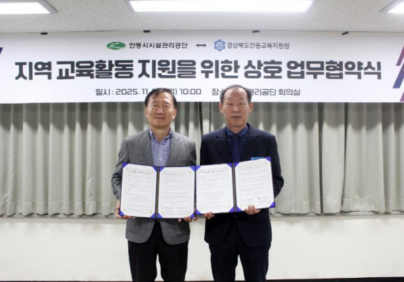 안동시시설관리공단은 11월 3일 공단 회의실에서 경상북도안동교육지원청과 ‘지역 교육활동 지원을 위한 업무협약(MOU)’을 체결했다.이번 협약은 공공기관과 교육기관이 협력해 지역 학생들의 복지와 교육환경을 개선하고, 체험 중심의 교육활동과 안전교육을 강화하기 위해 체결됐다.시설관리공단은 보유한 체육․문화․환경시설과 전문 인력을 활용해 학생 대상 체험형 교육 프로그램을 운영하고, 교육지원청은 학교 교육과정과 연계해 참여를 지원한다.양 기관은 체육․문화․예술․환경 등 다양한 분야의 교육 프로그램 공동개발, 학교생활 안전 및 재난대응 훈련, 청소년 직업체험 운영, 지역사회 연계사업 추진, 재난 시 인력․장비 지원 등에 협력하기로 했다.이재환 안동시시설관리공단 이사장은 “시설관리공단이 지역 청소년과 함께 성장하며 사회적 책임을 실천하는 것은 뜻깊은 일”이라며 “교육 현장과 지역사회가 상생하는 협력 모델을 만들어가겠다”고 말했다.홍성중 안동교육지원청 교육장은 “학생들이 지역의 인프라를 통해 다양한 체험과 배움을 얻을 수 있을 것으로 기대한다”고 밝혔다.안동시시설관리공단은 이번 협약을 통해 공공자원을 활용한 학생 체험 및 안전교육을 강화하고, 학교와 지방공기업 간 협력체계를 구축해 지역 교육 발전과 사회적 가치 실현에 기여할 계획이다.