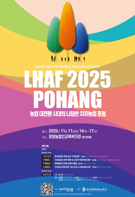 포항시는 오는 11일 포항농업인교육복지관 3층 장미홀(북구 흥해읍 성곡서로 32번길 7)에서 ‘농업 대전환 시대의 나침반, 치유농업 포럼’을 개최한다. 이번 포럼은 급변하는 농업 환경 속에서 치유농업의 사회적 가치와 발전 방향을 논의하고, 지역 중심의 공감대를 형성하기 위한 자리로 마련됐다. 치유농업 관련 학계·전문가·농장 대표·행정 관계자 등 200여 명이 참석할 예정이다. 행사는 민승규 세종대학교 석좌교수(前 농촌진흥청장)의 기조강연 ‘한국농업의 미래 상상, 치유농업’로 시작한다. 이어 행정, 디지털헬스케어, 치유농장 운영 등 각 분야 전문가들의 주제 발표가 이어지며, 치유농업의 가치와 정책 방향을 다각도로 모색한다. 마지막 순서에서는 경북대학교 임기병 교수가 좌장을 맡아 패널 종합토론과 질의응답이 진행된다. 특히 지역 대표 치유농장 및 사회적 농장 운영 주체들이 함께 참여해 지역 치유농업의 현황과 향후 발전 전략을 심도 있게 논의할 예정이다. 이현주 포항시농업기술센터 소장은 “이번 포럼은 농업의 새로운 사회적 가치로 주목받는 치유농업의 비전과 발전 방향을 지역 중심으로 논의하는 뜻깊은 자리”라며, “앞으로도 치유농업이 시민의 건강과 행복을 지키는 나침반이 될 수 있도록 최선을 다하겠다”고 말했다. 한편 이번 포럼은 치유농업 관계자가 아니더라도 관심 있는 시민 누구나 참여할 수 있다. 참석을 희망하는 시민은 홍보 포스터 내 QR코드를 통해 사전 참여 신청이 가능하다.