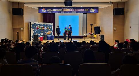김천시는 지난 19일 오후 2시 김천녹색미래과학관 세미나실에서 “어린이 과학 마술 콘서트”를 성공적으로 개최하고, 공연을 관람한 어린이 90여 명에게 잊지 못할 과학적 즐거움을 선사했다. 이번 콘서트는 과학의 숨은 원리를 이용한 신기하고 흥미로운 마술 공연을 통해, 어린이들에게 과학의 매력을 알리고 과학 교육에 대한 관심을 높이는 데 이바지하고자 마련됐다. 특히, 공연의 하이라이트인 “레이저 쇼”는 신비하고 흥미로운 무대배경 속에서 레이저 광선을 이용한 빛과 색이 어우러진 화려한 무대를 연출하여 어린이들에게 큰 호응을 얻었고 공연 후에는 마술사와 관람 어린이들이 기념사진을 찍는 시간을 마련하여 어린이들에게 큰 추억을 안겨 주었다. 배낙호 김천시장은 “이번 ‘어린이 과학 마술 콘서트’를 통해 가족과 함께 즐겁게 시간을 보내고 과학의 아름다움을 경험할 수 있는 문화 공간으로서 역할을 더욱 확장해 나갈 것”이라고 밝혔다.