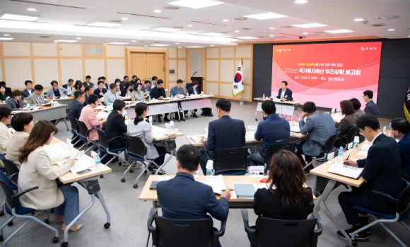 구미시는 5월 8일 시청 대회의실에서 ‘2026년 국가투자예산 추진상황 보고회’를 열고, 국비 확보를 위한 전방위 대응에 나섰다. 이번 보고회는 김장호 시장 주재로 열렸으며, 각 국비사업 담당 국장 및 과장 등 80여 명이 참석했다.이날 보고회에서는 2026년 국비 9,800억 원 확보를 목표로 발굴한 사업들에 대해 각 사업별 추진 현황과 향후 대응 계획을 공유하고, 부처별 협의 상황과 보완 사항을 논의했다.내년도 주요사업으로 ‣ 사회간접자본(SOC) 분야는 △스마트도시 조성사업 △도개지구 풍수해생활권 종합정비사업 △`구미~신공항`철도 건설 △구미 제3국가산업단지 경쟁력강화사업`1~3산단 연결교량 건설` △구미~군위간 고속도로 개설 △`동구미역`신설[대구경북선(서대구~의성)]‣ 산업·경제 분야는 △반도체 웨이퍼 공정장비용 소재부품 테스트베드 △인공지능기반 생성형 디지털콘텐츠 산업육성 지원센터 구축 △S반도체·E전자·R배터리 산업고도화를 위한 지역특화 자율제조 확산사업 △창업거점 스타트업 필드 구축사업 △GaN 에피웨이퍼 제조 테스트베드 구축 △자율제조용 온디바이스-AI테스트베드 △문화로 상권활성화사업‣ 문화·교육 분야는 △대한민국역사박물관(구미산업화역사관) 건립 △국립청소년 디지털 교육관 건립 △구미시 제2육아종합지원센터 건립 △국립 구미 잡스페이스 건립 △금오공과대학교 글로컬대학 지정 △청년문화센터`아이두케어`건립 ‣ 환경·농업 분야는 △푸드테크 연구지원센터 구축 △구미 펫테크 산업지원센터 구축사업 △탄소중립 선도도시 조성 △녹색융합클러스터 조성 △4단지 처리구역외 2개소 노후하수관로 정비공사 △동지역 농기계 임대사업소 신축 등이 논의됐다.구미시는 부처 예산요구서 제출 및 기획재정부 심의 시기를 고려해 사업별 대응전략을 지속적으로 정비하고, 정부 중점 투자분야와 연계한 지역 맞춤형 신규사업을 추가 발굴해 국비 확보 기반을 체계적으로 강화할 방침이다.김장호 구미시장은 “국비 확보는 단순한 예산 확보를 넘어, 지역의 성장 방향을 정부 정책과 유기적으로 연결하는 전략적 행정”이라고 강조하며, “5월부터 정부 예산편성이 본격화되는 만큼 부처별 정책 흐름을 수시로 파악하고, 맞춤형 대응 방안을 마련해 정부 예산안에 구미의 미래가 담기도록 총력을 다해달라”고 당부했다.