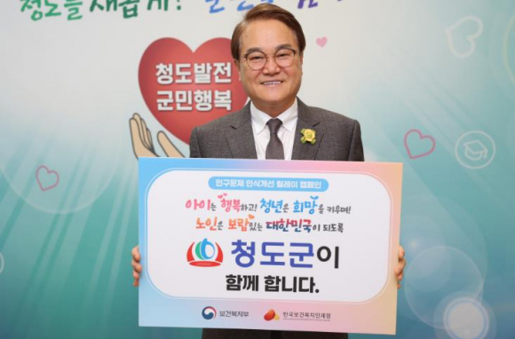 청도군은 저출생과 고령화에 따른 인구감소 문제에 대한 사회적 공감대 형성과 인식개선을 위해 ‘인구문제 인식개선 릴레이 캠페인’에 동참했다. 이번 캠페인은 보건복지부와 한국보건복지인재원이 공동 주관하는 캠페인으로, “아이는 행복하고, 청년은 희망을 키우며, 노인은 보람있는 대한민국이 되도록 하자”는 선언문을 바탕으로 전국 지자체와 공공기관이 참여하는 릴레이 방식으로 진행된다. 변창훈 대구한의대학교 총장의 지목을 받아 캠페인에 참여한 김하수 청도군수는 다음 릴레이 주자로 이일상 청도경찰서장을 지목했다. 청도군은 그간 인구감소와 고령화 문제에 대응하기 위해 정주여건 개선과 청년 유입 프로그램 개발 등을 꾸준히 추진해왔다. 그 결과, 경상북도 주관 ‘2025년 인구활력 주요 공모사업’에 선정되어 총 9억 1천 4백만원의 예산을 확보하는 등 높은 발전 가능성을 보여주고 있으며 일‧가정 양립과 출산 친화적인 사회 분위기 조성을 위한 인식개선에도 힘쓰고 있다. 특히, 올해 출생아 수는 45명으로 ‘24년 4월(34명)대비 11명이 증가했다. 태어난 아이는 대학과 결혼까지 생애주기에 따라 1인 최대 2억 5천만원을 지원받을 수 있는 생애주기별 종합 지원정책(△신혼부부 19,200천원, △임신‧출산 104,017천원, △영아 52,286천원, △초‧중‧고 11,328천원, △대학생‧청년 70,250천원)의 혜택을 받을 수 있다. 김하수 청도군수는“인구문제는 단순한 통계상의 수치가 아니라 지역의 미래를 좌우하는 중요한 과제”라며,“이번 캠페인을 통해 인구감소 문제의 심각성을 공유하고, 지속 가능한 지역 발전을 위한 다양한 정책을 추진하겠다”고 밝혔다.