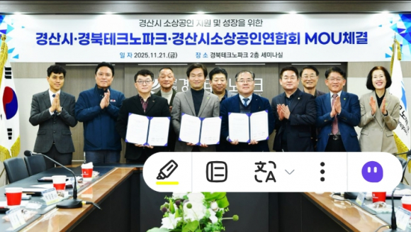 경산시는 21일 경북테크노파크 세미나실에서 경북테크노파크, 경산시소상공인연합회와 함께 ‘소상공인 성장 지원 업무협약(MOU)’을 체결했다고 밝혔다. 이번 협약은 조현일 경산시장, 하인성 경북테크노파크 원장, 박장훈 경산시소상공인연합회장을 비롯한 관계자 10여 명이 참석했으며, 지역경제의 핵심 축인 소상공인의 자생력 강화와 안정적인 성장 기반 마련을 위한 민·관 협력체계 구축의 일환으로 추진됐다.협약의 주요 내용은 ▲소상공인 관련 정책 추진 및 행정적 지원, ▲소상공인의 역량 강화 지원, ▲지역경제 활성화를 위한 다양한 활동 지원 등으로, 세 기관은 상호 교류와 협력을 통해 실효성 있는 지원체계를 운영해 나가기로 약속했다. 이번 협약에는 조지연 국회의원의 지역 소상공인에 대한 아낌없는 관심과 지원도 큰 역할을 했다. 조의원은 소상공인시장진흥공단 경산사무소 개소, 경산시 소공인복합지원센터 공모 선정 등 지역 소상공인의 오랜 숙원사업 해결을 위해 지속적으로 노력해 왔다.조현일 경산시장은 이번 협약을 통해 “지역 경제의 골목을 지키는 주역인 소상공인들이 지속적으로 성장할 수 있도록 유관 기관과 함께 힘을 모아 적극 지원하겠다”고 말했다.한편, 경산시는 소상공인의 경영안정을 위한 특례 보증 지원, 공공 배달앱 운영지원, 카드수수료 지원, 경영환경 개선을 위한 ‘새바람 체인지업 사업’과 출산 장려‘아이보듬 사업’ 등 다양한 정책을 추진하고 있다.