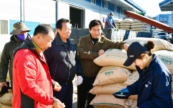 경산시는 17일 하양읍 한사창고를 시작으로 오는 12월 2일까지 지역 내 농협창고를 이용하여 2025년산 공공비축미곡 1,297톤(32,421포/40kg) 건조 벼 매입을 진행한다.매입품종은 일품, 삼광 2품종으로 한정되며, 다른 품종이 혼입되지 않도록 주의가 요구된다. 특히, 2018년부터 시행된 품종검정제도에 따라 농가가 계약서에 기재한 품종과 실제 출하 품종이 일치하지 않으면, 향후 5년간 공공 비축미 매입 대상에서 제외되므로, 출하 때 각별한 주의가 필요하다.매입가격은 수확기(10월~12월) 전국 평균 쌀값을 반영해 12월 말에 확정되며, 수매 당일 중간 정산금으로 포대당(40kg) 4만 원을 우선 지급하고 최종 정산은 매입 가격 확정 후, 농협을 통해 지급된다.조현일 경산시장은 “운송장비를 활용한 작업이 많아 안전사고 예방에 각별히 유의해 달라”고 당부하며, “수확기 연속된 강우로 어려운 여건 속에서도 수확의 결실을 거둔 농민들의 노고가 헛되지 않도록 공공비축미곡 매입에 최선을 다할 것이다”라고 전했다.