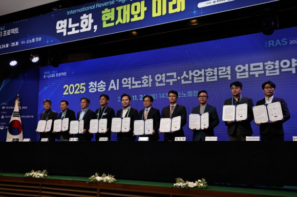 경상북도와 청송군이 공동 주최하고 대구가톨릭대학교가 주관한 ‘2025 청송 국제 역노화 서밋(International Reverse-Aging Summit 2025)’이 24일부터 25일까지 이틀간 청송 소노벨에서 성황리에 개최됐다.행사에는 김학홍 경북도 행정부지사, 박성만 경북도의장, 윤경희 청송군수 등 주요 지자체 인사와 성한기 대구가톨릭대학교 총장을 비롯해 국내외 AI·바이오 기업, 세계적 연구자, 의료·산업계 관계자 등 300여 명이 참석했다.이번 서밋은 경상북도가 추진하는 미래도시 전략인 K-U시티 프로젝트의 핵심 전략으로 열렸으며, 역노화 연구와 AI 기술, 지역 농업과 기능성 소재 산업화를 하나의 흐름으로 연결하는 새로운 지역 혁신 모델을 제시했다.프로그램은 기조연설·전문세션·MOU 체결 등으로 구성됐으며, 국내 유수 연구기관·대학의 전문가들뿐 아니라 바이오·AI 기업 대표들이 폭넓게 참여한 행사로, 학계와 산업계가 함께한 전 분야 참여형 역노화 국제행사로 평가받았다.기조연설에는 노화생물학 분야의 세계적 석학인 아담 안테비(Adam Antebi, 막스플랑크 노화생물학연구소 소장)와 후성유전·세포 리프로그래밍 연구를 선도하는 주종준(Zhongjun Zhou, 홍콩대학교) 교수가 참여했다. 두 석학은 노화의 핵심 기전과 최신 글로벌 연구 동향을 심층적으로 다루며, AI 기반 다중오믹스 분석이 역노화 과학과 기능성 소재 연구의 혁신 속도를 크게 앞당길 것이라고 강조했다. 이들의 발표는 청송이 추진 중인 AI·바이오 융합형 전략과 정확히 맞물리며 서밋의 국제적 위상을 한층 높였다.남홍길 AI역노화연구원장은 “청송은 AI 분석기술과 농업 기반 기능성 원료 연구가 함께 실증될 수 있는 드문 조건을 갖춘 지역”이라며 “이번 서밋은 청송형 K-U시티 전략을 기술적으로 현실화하는 중요한 출발점”이라고 강조했다.총 20명의 국내 연구자와 바이오·AI 기업 CEO들이 발표자로 참여한 이번 서밋은 1일 차 ‘역노화 연구 동향’, 2일 차 ‘AI for Reverse Aging’ 세션으로 구성됐으며, 노화 기전, 단일세포 분석, 유전체 기반 연구, AI 다중오믹스 분석, 디지털 헬스데이터 활용 전략, 기능성 소재 연구·산업화 사례 등 폭넓은 최신 성과를 공유했다.KAIST·DGIST·한국생명공학연구원 등 국가 연구기관의 연구자들과 BioNexus, CellKey AI, Bagel Labs 등 국내 AI·바이오 혁신기업 대표들이 같은 세션에서 발표를 진행하며, 연구–산업–농업–AI 기술이 결합한 통합 역노화 생태계의 미래 모델을 제시했다.박상철 석좌교수, 김범대 원장, 고도원 이사장이 진행한 대중 강연은 지역 주민과 청년들의 높은 관심을 끌며 서밋의 공공성과 사회적 확장성을 높였다. 이번 서밋에서 총 10개 기관이 업무협약(MOU)을 체결해 ‘청송 역노화 연구⸱산업 협력 컨소시엄’을 구성하기로 합의했다.본 협약에는 경상북도·청송군·대구가톨릭대학교를 비롯해 DGIST 웰에이징연구센터(연구), BioNexus·CellKey AI(AI 기반 바이오), 티지바이오텍·메타센테라퓨틱스·유니베라(기능성 소재·산업·농업 연계), 글로벌벤처네트워크(GVN)(투자 자문) 등의 기관이 참여했다.이 컨소시엄은 연구–AI–산업–농업–정주가 하나의 체계로 연결되는 ‘풀스택 역노화 생태계(Full-Stack Ecosystem)’의 핵심 기반으로, K-U시티 프로젝트의 실증 모델로 자리 잡을 전망이다.경상북도는 2024년부터 ‘청송 AI 역노화 연구단지’ 조성을 추진해 왔으며, 연구·AI·산업 협력 기반을 확장하기 위해 이번 서밋을 기획했다. 2027년 준공 예정인 연구센터는 AI 다중오믹스 분석실, 기능성 원료 연구동, 공동장비센터, 기업 협력·사업화 공간, 시제품 제작·실증 공간, 청년 정주·창업 지원시설 등으로 구성된다.이를 통해 청송은 연구–AI–농업 기반 기능성 소재–산업화까지 연결하는 경북 북부권 대표 역노화 연구·산업화 거점으로 도약할 계획이다.특히 지역 농특산물(청송 사과 부산물, 영양 산나물, 봉화 산약초 등)을 활용한 기능성 소재 연구에 AI 분석기술을 결합하는 새로운 접근은 청송을 “작지만 가장 진보된 역노화 실증 도시”, 나아가 경북 북부권 농업–바이오 융합 혁신의 중심지로 성장시키는 핵심 동력이 될 것으로 기대된다.이철우 경상북도지사는 “이번 서밋을 통해 경북 청송은 역노화 연구와 산업화를 모두 담아낼 수 있는 풀스택 생태계 기반을 갖추게 될 것”이라며, “AI·바이오 기술과 지역 농업·기능성 소재 산업을 연계한 새로운 성장 모델을 청송에서 실증해 나가겠다”고 밝혔다.이어 “경북 청송은 K-U시티 프로젝트의 핵심 실증지로서 충분한 잠재력을 갖춘 지역이며, 이번 서밋을 계기로 연구기관과 기업이 함께 협력하는 미래기술 산업의 중심지로 도약할 것”이라고 강조했다.서밋 이후 청송에서는 역노화 연구 역량 강화, AI 중심 기술혁신, 농업 기반 기능성 소재 산업 육성, 청년 정주·교육·창업 기반 확충, 웰니스·관광 산업 연계가 동시에 가속화될 전망이다.