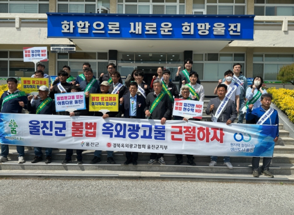 울진군은 지난 5월 8일 쾌적하고 안전한 보행환경과 도시 미관을 위해 불법 옥외광고물 근절을 위한 민·관 합동 캠페인을 진행했다. 이날 캠페인에 참석한 군청 공무원과 경북옥외광고 울진군지부 회원 등 30여 명은 울진군청에서 불법 옥외광고물 근절 결의대회를 시작으로 연호공원까지 가두 행진을 하며, 불법옥외광고물를 교차로 등에 설치하여 교통사고 등의 유발 위험성과 문제점을 알렸다. 연호공원 주변 불법 현수막을 제거하여 주민들의 휴식공간을 정비 했다. 또한, 울진군은 불법 현수막의 무분별한 난립을 막기 위해 현수막게시대를 추가로 설치하여 양성화를 유도하고, 지속적인 계도 및 단속 활동을 통해 불법옥외광고물을 근절할 예정이다. 손병복 울진군수는“올해는 대통령선거가 있어 불법 현수막 등이 난립할 수 있어 특히 관심을 가져야 하는 시기다”며“앞으로도 지속적인 단속과 주민 참여 캠페인으로 울진군의 아름다운 거리 환경과 안전한 도시 조성을 위해 최선을 다할 것”이라고 말했다.