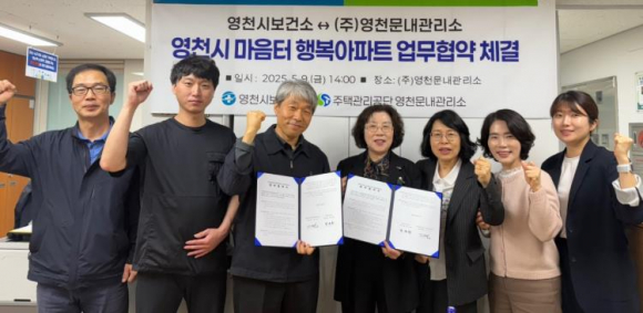영천시가 지역주민의 정신건강 증진과 자살 예방을 위해 본격적인 현장 밀착형 사업에 나선다. 영천시보건소는 9일 주택관리공단 영천문내관리소와 업무 협약을 체결하고, 해당 아파트를 ‘마음터 행복아파트’로 지정했다.이번 협약은 자살 고위험군을 조기에 발견하고, 정신건강 문제를 예방·개입하기 위한 지역특화사업의 일환으로 추진됐다. 보건소는 5월부터 정신건강 이동 검진, 상담, 교육, 캠페인 등 입주민 맞춤형 서비스를 단계적으로 제공할 예정이다. ‘마음터 행복아파트사업’은 시와 민간기관이 협력해 정신건강 문제, 경제적 위기 등 복합적인 상황으로 자살 위험에 놓인 주민을 조기에 발굴하고, 보건·복지 분야의 통합서비스를 연계 지원하는 사업이다.시는 이번 협약에 이어, 오는 13일에는 영천망정휴먼시아5단지관리소와 업무 협약을 체결하고 마음터 행복아파트로 추가 지정할 예정이다. 이날 협약식에는 박선희 보건소장, 김보민 문내관리소장 등이 참석해, 주민의 삶 가까이에서 선제적으로 정신건강을 돌보는 협력 체계 구축에 뜻을 모았다.박선희 보건소장은 “자살 고위험군이 지역사회에서 고립되지 않도록 조기에 발견하고, 필요한 지원을 신속히 연계해 지속적으로 관리해 나가겠다”고 말했다.김보민 관리소장은 “이번 협약은 주민과 가까운 곳에서 도움을 줄 수 있는 새로운 연결고리가 만들어졌다는 점에서 의미가 크다”며, “주민의 정신건강 증진에 실질적인 도움이 될 수 있도록 아파트 차원에서도 적극 협조하겠다”고 밝혔다.