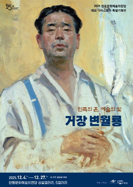 안동문화예술의전당은 광복 80주년을 맞은 올해를 뜻깊게 마무리하고자 해외 디아스포라* 특별전 ‘민족의 혼 예술의 빛 – 거장 변월룡展’을 12월 4일부터 27일까지 안동문화예술의전당 상설갤러리, 5갤러리에서 개최한다.2015년 광복 70주년 기념 ‘디아스포라의 배展’에 이어, 올해는 한국적 정체성을 예술로 구현한 선구적 거장, 변월룡(1916–1990)을 조명하며 그의 삶과 작품을 통해 한민족의 뿌리와 정체성을 되새기고자 한다.변월룡은 일제강점기와 한국전쟁이라는 격동의 시대를 살아낸 화가로, 그의 삶 자체가 한국 근현대사의 흔적이다. 그의 그림은 그 흔적을 기록하는 수단이 됐으며, 단순한 풍경이나 인물화를 넘어 조국과 삶의 기억을 화폭에 담아낸 예술적 증언이었다. 특히 러시아 사실주의의 치밀한 묘사 기법은 작품 속 현장감을 생생하게 전달하며, 민족에 대한 그리움이 녹아든 한국적 정서와 결합돼 그의 독창적 화풍을 완성했다.변월룡의 작품은 이국에서 정착의 어려움을 딛고 새로운 삶과 예술적 지평을 개척한 디아스포라 예술가의 대표적 사례로 큰 가치를 지니며, 이번 전시는 단순한 작품 감상을 넘어 한국 정신문화의 뿌리와 해외 한인 사회를 연결하는 상징적 의미를 전달한다.