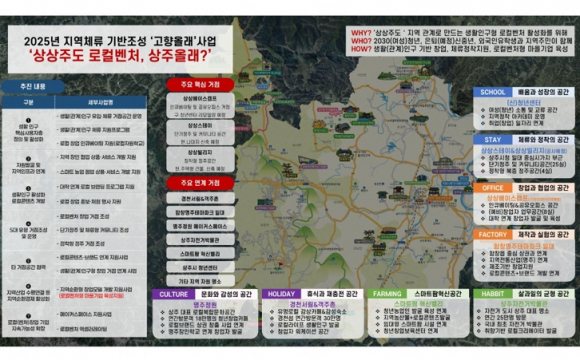경상북도와 상주시는 행정안전부 ‘고향올래(GO響ALL來)’ 공모 사업에서 ‘상상주도 로컬벤처. 상주올래?’가 최종 선정되어 국비 10억원을 확보했다.‘고향올래 공모사업’은 인구 이동성 증가로 정주 인구만큼이나 중요해진 체류형 생활인구의 지역 유입을 활성화하고, 지역의 고유한 자원과 특성을 활용해 찾고 싶고, 머무르고 싶은 체류 기반을 만드는 행안부 사업이다.올해 공모사업은 지역 수요조사 등을 반영해 ▴‘일(work)과 휴식(vacation)’을 동시에 즐기는 워케이션(Workation), ‘배움(learn)과 휴가(vacation)’ 합성어인 런케이션(Learncation), 로컬벤처, 로컬유학, 두 지역살이 등 모두 5개 분야의 사업으로 진행됐다. 경북도와 상주시가 함께한 ‘상상주도 로컬벤처 상주올래?’사업은 이번 공모에서 지역 내 창업과 취업을 활성화해 정착을 유도하는‘로컬벤처’분야에 선정되어 국비(특교세) 10억원을 확보하게 됐다.사업은 2025년부터 2027년까지 상주시 일원을 중심으로 27억원(국비 10, 지방비 13, 민자 4)을 투자해 로컬창업형 생활인구 활성화 사업, 로컬창업자 지역기반 성장지원 사업, 로컬창업자 정착 및 지속성장 지원 사업을 단계적으로 추진하게 된다. 로컬창업형 생활인구 활성화는 상주시 중심 시가지에 공유오피스와 창업성장 프로그램을 제공하는 ‘상상베이스캠프’, 주거와 커뮤니티를 제공하는 ‘상상 스테이’, 상상 빌리지’등 핵심거점 공간 3개소를 조성해 창업과 주거 공간을 로컬벤처 창업자에게 동시에 제공한다.예비 및 신규 창업자 교육은 특히, 2030 여성청년의 참여를 위해 국내외 대학교와의 연계를 통한 로컬벤처 창업 프로그램을 운영하고, 성신여자대학교는 2026년부터 상주시 내에 ‘마이크로캠퍼스’를 도입해 대학생들이 현장에서 배우고, 지역과 연결되는 학습과정을 개설해 로컬벤처 예비창업자 육성에 함께할 예정이다.지역내 외부 창업활동 공간을 연계한 창업자 성장지원은 낙동강이 보이는 한옥숙박과 산책로가 있는 공유 오피스 ‘경천서림’, 시제품 제작을 지원하는 ‘메이커스페이스’, 시제품 전시 및 판매가 가능한 복합문화공간 ‘명주정원’이외에도 상주시 산하의 스마트팜 혁신밸리, 함창명주테마파크, 상주자전거박물관 등 상주시 지역자원 및 인프라를 연계해 로컬벤처 창업자들을 지원한다. 창업 이후 창업자들의 지역정착과 지속성장 지원은 상주시 로컬벤처 대상 투자의향을 가진 투자회사 3개소를 이미 확보해 두었고, 최소 4억원 이상의 투자가 진행될 예정이며, 로컬벤처 창업자 간의 네트워크 강화와 지역과의 연결성 강화를 위해 이들을‘로컬벤처형 마을기업’으로의 육성에도 정책적 지원을 아끼지 않을 예정이다. 도는 이 사업을 계기로 지역의 청년창업자와 마을자원을 연계한 마을기업을 육성하고, 본격적인 마을기업 활성화 선도사례로 만들어간다는 계획이다.사업이 성공적으로 추진되면 상주시에는 로컬창업 청년이 마을기업을 매개로 지역에 정착할 수 있는 정주형 창업모델이 구축되고, 창업과정 생활(관계)인구 유입 연간 200명 이상, 로컬벤처 사업모델 기반 생활(관계)인구 유입 연간 6,000명 이상이 될 것으로 예상된다.또한 상주시 기존 생활 인구의 체류 활성화에도 연간 9,000명 이상에게 긍정적인 영향을 미칠 것으로 기대된다. 양금희 경상북도 경제부지사는 “초저출산과 수도권 집중으로 인한 지방소멸 위기가 심화하는 가운데, 이번 고향올래 사업 선정을 통해 상주가 여성청년 중심 로컬벤처 허브로 도약할 수 있는 기반을 마련했다”며 이번 사업으로 “지역 소멸을 극복하고 젊은 세대가 머무르고 싶어하는 정주형 창업 도시 및 지역 경제 활성화 선도모델이 되기를 기대한다”고 밝혔다.