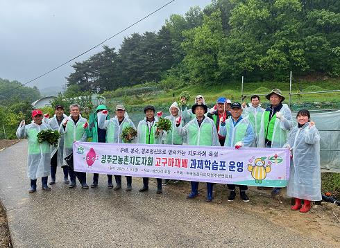 한국농촌지도자성주군연합회는 5월 9일 성주읍 성산2리 인근 농장에서 군연합회 및 읍·면 임원 30여 명이 참여한 가운데 과제 학습포 운영의 일환으로 고구마 심기 활동을 실시했다. 과제학습포 운영은 농촌지도자 회원들의 지역에 적합한 새로운 고구마 품종 발굴과 재배기술 공유 및 농업 경쟁력을 높이기 위해 실시하고 있으며, 회원들의 영농 정보 교류의 장으로서 활발히 활용될 예정이다. 한국농촌지도자성주군연합회 강병덕 회장은“궂은 날씨에도 불구하고 과제학습포 활동에 적극 참여해준 회원들에게 감사한 마음을 전한다”며 “앞으로 회원들 간의 영농 기술과 정보를 공유하는 귀중한 기회가 되기를 바라며 지역사회에 기여할 수 있는 농촌지도자회가 되자”라고 말했다. 성주군농업기술센터 김주섭 소장은 “농촌지도자 회원들이 주축이 되어 새로운 품종에 대한 지역 적응성 시험과 과학영농을 위한 선도적인 역할을 수행해 주실 것을 기대한다”라며 격려했다. 한편, 성주군농촌지도자회는 PLS(농약 허용물질 목록 관리제도) 실천을 위한 선도적인 역할, 환경정화 활동, 어려운 이웃 돕기, 농약 빈병 수거, 탄소중립 실천 결의 등 다양한 사회공헌 활동을 꾸준히 이어오고 있다.