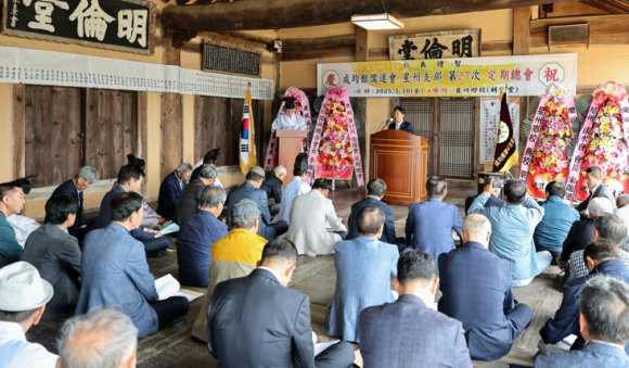 성균관유도회 성주지부 지난 10일 오전 11시 성주향교 명륜당에서 제27차 정기총회를 개최했다.이날 행사에는 이병환 성주군수를 비롯해 성주군의회 의장, 유림단체장 등 30여 명이 참석했으며, 개회식에 이어 국민의례, 문묘향배, 감사패 및 신규 회원증 수여, 축사, 2024년도 사업실적 및 결산보고, 2025년도 사업계획 및 예산(안) 심의 순으로 진행됐다.성균관유도회 성주지부는 1996년 발족 돼 현재 120여 명의 회원이 잊혀 가는 전통문화 계승·발전에 앞장서고 있으며, 윤리 도덕의 기본을 중시하는 유림단체로서 충과 효의 정신을 바탕으로 한 유학이념의 현대화와 대중화를 위해 노력하고 있다.이병환 성주군수는 “도덕과 윤리가 있는 사회조성을 위해 노력해주시는 유도회원들께 감사의 인사를 전하며, 앞으로도 지역사회가 올바른 길로 나아갈 수 있도록 좋은 안내자가 되어줄 것”을 당부했다.