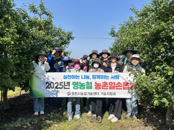 영천시농업기술센터 기술지원과 직원들은 12일 영농철을 맞아 일손 부족으로 어려움을 겪고 있는 화북면 횡계리 사과 농가를 찾아 일손돕기를 실시했다. 농장주는 “본격적인 영농철이 되어 일손을 구하기 어려운데, 바쁜 업무 중에도 직원들이 일손을 보태줘서 큰 도움이 됐다”며 감사를 전했다. 박상은 기술지원과장은 “영농철 일손이 부족한 농가에 직원들의 땀방울이 조금이나마 도움이 되길 바란다”며, “앞으로도 지속적인 농촌일손돕기 활동을 추진해 어려운 농촌 현실을 이해하고, 상호 공감대를 형성하도록 노력하겠다”고 전했다.