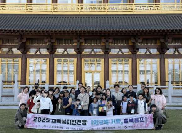 경상북도경산교육지원청은 교육복지안전망 사업의 일환으로 5월 9일 ~ 5월 10일(1박 2일) 경주 황룡원에서 교육복지사 미 배치교 가족을 대상으로 `지구별 가족, 행복캠프`를 실시했다. 가족과 함께 자연 속에서 공감하고 소통할 수 있는 시간을 통해 가족 간 의사소통 및 정서적 지지체계를 강화하고자 진행됐다. 이번 가족캠프는 12가족 40여명이 참여해서 가족소통 프로그램으로 보물찾기, 도미노 챌릴지, 따로 또 같이 가족공동체 활동, 가족 추억채우기 등 다양한 체험프로그램을 구성하여 운영됐다. 경산교육지원청 박경화 교육장은“이번 교육복지안전망 가족캠프를 통해 서로 소통하고 화합하여, 청소년기의 우리 학생들이 가정, 학교, 교육청과 함께 성장시키는 계기가 되기를 바라며, 앞으로도 학생들의 건강한 성장을 위한 다양한 지원을 아끼지 않겠다.”고 했다.