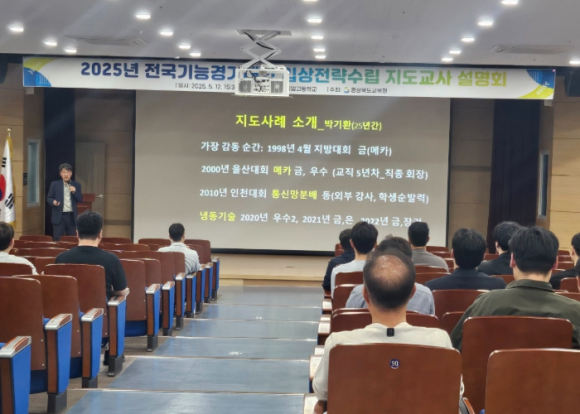 경북교육청은 12일 구미시에 있는 구미전자공업고등학교에서 도내 직업계고 기능경기대회 업무 담당자와 지도교사 60여 명을 대상으로 ‘전국기능경기대회 입상 전략 수립 설명회’를 개최했다. 이번 설명회는 올해 광주광역시에서 열리는 제60회 전국기능경기대회를 대비해 마련된 자리로, 경북 대표선수단의 전략적 준비를 위한 직종별 입상 전략 수립과 학교 현장 지원 방안을 중점적으로 다뤘다. 경북교육청 담당 부서에서 제안한 효율적 지원 방안과 입상 전략은 현장 교사들로부터 높은 관심과 호응을 얻었으며, 참석자들은 학생선수단의 ‘8년 연속 우승’이라는 새로운 도전 목표를 공유하며 의지를 다지는 시간을 가졌다. 경북교육청은 2018년부터 2024년까지 7년 연속 전국기능경기대회 학생부 종합우승이라는 기록을 이어오며, 직업계고 학생들의 실력 향상과 숙련 기술 교육 인프라 확산에 앞장서 왔다. 이러한 성과는 학교 현장 중심의 체계적인 기능 교육과 현장 전문가 중심의 집중 지원이 뒷받침됐기에 가능했다. 임종식 교육감은 “경북교육청은 체계적인 직업교육을 통하여 미래 산업사회를 이끌어갈 우수 기능인 양성에 최선을 다하고 있다”라며, “앞으로도 지속적인 지원과 체계적인 교육을 통하여 대한민국을 넘어 세계 숙련 기술의 표준이 될 수 있도록 적극 지원하겠다”라고 말했다.