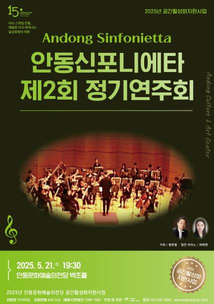 안동문화예술의전당 기획공연 ‘안동신포니에타 제2회 정기연주회’가 다가오는 5월 21일 19:30에 안동문화예술의전당 백조홀에서 열린다.이번 공연은 2025 안동문화예술의전당 공간활성화지원사업의 일환으로 진행되는 공연으로, ‘공간활성화지원사업’은 지역예술가와 단체에 전문시설 제공 및 활동 지원을 통해 지역의 문화예술 활동을 확산시키기 위해 기획․시행된다.이번 공연에서는 안동신포니에타 단원들과 피아니스트 이미연의 협연을 볼 수 있다. 베토벤의 에그몬트 서곡 Op.84, 모차르트 피아노 협주곡 21번 등의 전통 클래식을 만날 수 있다.피아니스트 이미연은 현재 영남대학교 피아노과 교수로 대구시립교향악단, 원주시립교향악단 등 다수의 국내 교향악단과 협연을 진행했으며, 해운대 음악제, 슈튜트가르트 만하임, 베토벤 클림트를 만나다 등에서 연주했다.안동신포니에타는 안동 및 경북 지역의 젊은 음악가들과 지휘자 겸 고문 정주영, 음악감독 김미령이 함께 정통 클래식을 연주하는 단체로, 지역 사회의 문화예술 향유를 증진하기 위해 만들어진 단체다. 다양하고 정기적인 연주 기획을 통해 수준 높은 전문 클래식 음악 연주를 제공, 지역 문화예술 발전과 클래식 음악의 대중화를 목표로 하고 있다.이번 공연을 마지막으로 2025 안동문화예술의전당 공간활성화지원사업은 마무리되며, 더 많은 지역 예술인들의 활동 기회를 제공하기 위해 하반기 지역 예술인을 위한 사업을 준비 중이다.