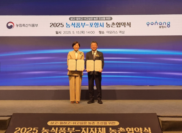 포항시가 농림축산식품부와 손잡고 농촌지역 정주 여건 개선과 삶의 질 향상에 본격 나선다. 시는 15일 서울 아모리스 역삼에서 열린 ‘2025년 농촌협약식’에서 농림축산식품부와 농촌 협약을 체결했다. 이날 행사에는 송미령 농림축산식품부 장관, 장상길 포항시 부시장을 비롯해 지난해 농촌 협약 대상 지자체로 선정된 21개 시군 관계자 등 150여 명이 참석했다. ‘농촌 협약’은 지자체 주도로 수립한 농촌생활권 발전 전략을 바탕으로 농림축산식품부와 협력체계를 구축해 농촌지역 생활권 중심의 통합 지원을 추진하는 사업이다. 이번 협약에 따라 포항시는 2029년까지 5년간 총사업비 343억 원(국도비 264억 원 포함)을 투입해 태풍 힌남노로 큰 피해를 입은 남부 농촌생활권 지역의 회복과 활성화에 나선다. 주요 사업으로는 ▲오천읍과 연일읍의 농촌 중심지 활성화 사업 ▲장기면 기초 생활 거점 조성 2단계 사업 ▲오천읍 진전리 취약지역 생활 여건 개조 사업 등이 포함돼 있다. 포항시는 이번 협약으로 정주 환경 개선은 물론 문화·복지 기반까지 확충해 농촌 주민의 삶의 질을 실질적으로 높인다는 방침이다. 장상길 포항시 부시장은 “이번 농촌 협약은 농촌의 기능 회복과 지역 균형발전의 중요한 전기가 될 것”이라며, “농촌 공간을 삶터·일터·쉼터가 어우러지는 살고 싶은 포항으로 만들기 위해 최선을 다하겠다”고 밝혔다. 포항시는 이번 협약을 계기로 농촌 공간의 회복과 더불어 지역 내 인구 유입, 지역경제 순환 등 지속가능한 농촌 활력 모델을 만들어 간다는 방침이다.