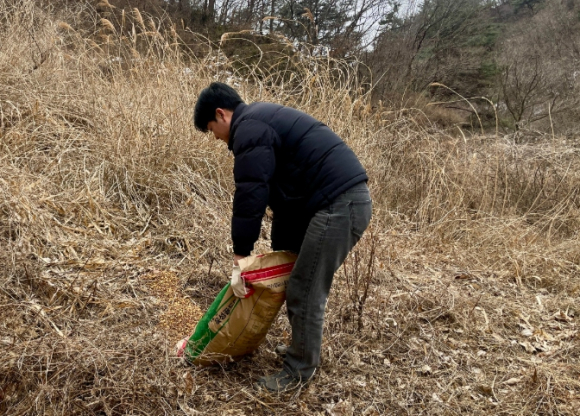 영주시는 지난 10일, 겨울철 먹이 부족으로 어려움을 겪는 야생동물의 안정적인 월동을 돕기 위해 (사)푸른환경보존협회와 함께 동절기 야생동물 먹이주기 행사를 실시했다.이번 행사는 부석면 일대 소백산 기슭에서 진행됐으며, 영주시 환경보호과 직원과 (사)푸른환경보존협회 회원 등 20여 명이 참여해 옥수수 등 약 700kg 상당의 먹이를 야생동물 서식지에 공급했다.아울러 야생 멧돼지의 민가 출현을 예방하기 위해 민가 인접 야산에 멧돼지 기피제를 살포하는 등 주민 안전을 위한 활동도 병행했다.시는 이번 먹이주기 활동을 통해 겨울철 먹이 확보가 어려운 야생동물의 생존을 지원하는 한편, 멧돼지의 이동을 제한해 아프리카돼지열병(ASF) 감염 및 확산 방지에도 도움이 될 것으로 기대하고 있다.김우열 환경보호과장은 “야생동물은 건강한 생태계를 유지하는 데 중요한 존재”라며 “앞으로도 사람과 자연이 공존할 수 있도록 야생동물 보호와 생태계 보전 활동을 지속적으로 추진하겠다”고 말했다.한편, 영주시는 야생동물 보호와 주민 안전을 위해 민간단체와 협력해 구조·치료 지원, 불법 엽구 수거 등 다양한 생태환경 보전 활동을 지속 추진하고 있다.
