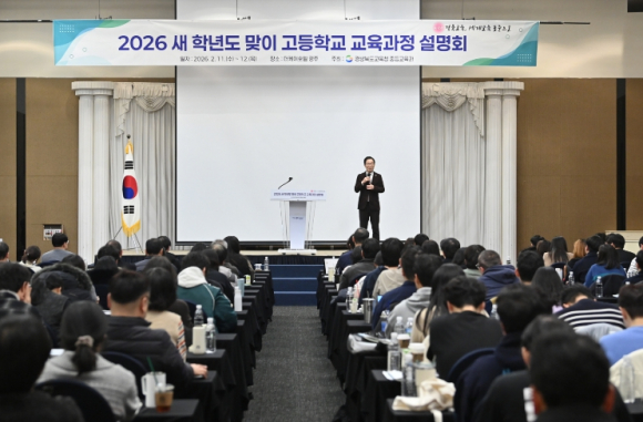 경북교육청은 11일부터 12일까지 이틀간 더케이호텔경주에서 도내 일반고(자율고․과학고․외국어고․체육고 포함) 업무 담당 교원 약 400명이 참석한 가운데 2026학년도 ‘새 학년도 맞이 고등학교 교육과정 설명회’를 개최했다고 밝혔다. 이번 설명회는 2022 개정 교육과정과 고교학점제 확대에 발맞춰 학생 선택과목을 확대하고, 미래형 교육과정 운영 기반을 조성하기 위해 마련됐다. 설명회에서는 △2022 개정 교육과정 총론 이해 및 선행교육 근절 △고교학점제 운영 방안 △공동교육과정 및 온라인학교 운영 △2028학년도 대입 개편 사항 △학생 역량을 키우는 수업과 성취평가 이해 △학생생활기록부 주요 사항 등을 중심으로 실무 중심 연수가 진행됐다. 아울러 국제 바칼로레아(IB) 프로그램과 대학 진학 역량 향상을 위한 지원 방안, 경제교육 동아리․경제버스 등 학교 특색 프로그램도 함께 안내해 현장의 이해도를 높였다. 특히 참가 교원들은 새 학년 준비 주간(2월 19일~23일)에 소속 학교 내 전달 연수를 실시해, 설명회 내용이 일선 학교 현장까지 체계적으로 공유될 수 있도록 할 예정이다. 경북교육청은 이번 설명회를 통해 2022 개정 교육과정과 고교학점제가 학교 현장에 안정적으로 정착되고, ‘깊이 있는 학습’과 ‘질문․탐구 수업’ 중심의 교수․학습 혁신이 확산해 학생 주도성과 자기 주도성을 갖춘 학습 환경이 구축될 것으로 기대하고 있다. 임종식 교육감은 “고교학점제 시대를 맞아 학교 현장이 체계적으로 준비할 수 있도록 교육과정․수업․평가 전반에 걸친 실질적 지원을 강화하겠다”라며, “모든 학생이 자신의 진로와 적성에 맞는 교육을 받을 수 있는 미래형 고교 교육환경을 만들어 나가겠다”라고 말했다.