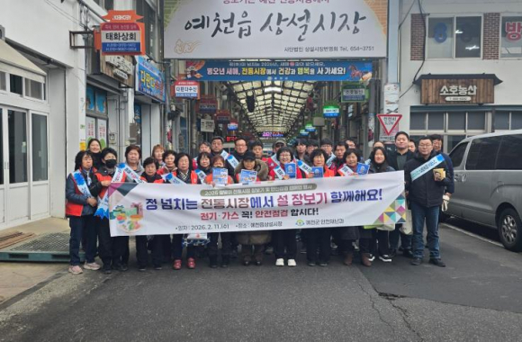 예천군은 11일 예천상설시장 일원에서 안전민간단체 회원 등 40여 명이 참여한 가운데 ‘설 맞이 안전점검의 날’ 캠페인 및 전통시장 장보기 행사를 실시했다. 이번 행사는 설 명절을 앞두고 군민들이 안전하고 따뜻한 명절을 보낼 수 있도록 화재와 가스 사고 등 각종 안전사고를 예방하고, 전통시장 이용객이 증가하는 시기를 맞아 생활 속 안전의 중요성을 알리기 위해 마련됐다. 이날 참가자들은 예천상설시장 내 상가 상인과 방문객을 대상으로 명절 기간 화재 예방과 안전사고 주의사항을 안내하는 등 현장 중심의 안전 홍보 활동에 주력했다. 아울러, 캠페인과 함께 전통시장 장보기 행사와 플로깅 활동을 병행해 지역 상권 활성화와 쾌적한 시장 환경 조성에도 기여했다. 또한, 안전민간단체와 함께 지역 안전 문화 정착을 위한 협력 방안에 대해 의견을 나누며 안전한 예천 구현을 위한 뜻깊은 시간을 가졌다. 예천군 관계자는 “설 명절을 앞두고 군민의 생명과 재산을 보호하기 위해 민·관이 함께하는 안전점검 활동을 추진했다”며, “앞으로도 일상 속 안전 문화가 정착될 수 있도록 지속적인 교육 및 캠페인과 점검 활동을 이어가겠다”고 말했다.