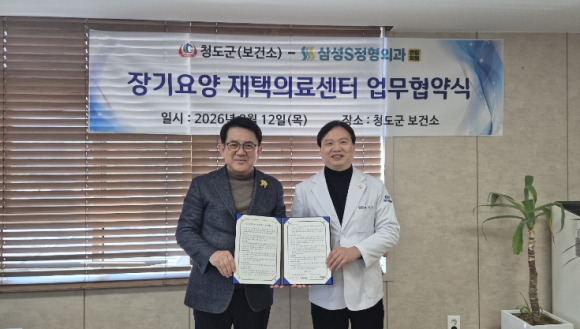 청도군은 2월 12일 청도삼성S정형외과연합의원(원장 김기영)을 장기요양 재택의료센터 의료기관으로 지정하고 업무추진을 위한 협약(MOU)을 체결했다. 이번 협약은 3월 27일부터 시행되는 의료·요양·돌봄 통합지원사업에 맞춰, 의료와 돌봄이 연계되는 민간의료기관-보건소간의 협업형 모델을 실현하기 위해 마련됐다. ‘장기요양 재택의료센터 시범사업‘은 의사, 간호사, 사회복지사로 구성된 다학제 팀이 장기요양 수급자 가정을 직접 방문하여, 방문진료, 방문간호, 의료처치와 지역사회 돌봄 서비스를 통합적으로 제공하는 사업이다. 협약에 따라 양기관은 ▲장기요양 수급자를 위한 재택의료 서비스 협력 ▲의료·요양 연계 강화를 위한 진료 및 자문 협력 ▲대상자 중심의 맞춤형 의료지원 ▲지역사회 통합돌봄 체계 구축을 위한 상호협력등을 추진할 계획이다.남중구 보건소장은 “지역내 어르신들이 익숙한 생활공간에서 보다 안전하고 전문적인 의료서비스를 받을수 있도록 최선을 다하겠다”고 말했다.