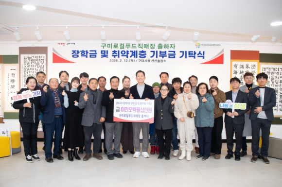 구미먹거리통합지원센터는 2월 12일 구미시청 선산출장소에서 장학금 및 취약계층 지원 기부금 기탁식을 개최했다.이날 행사에는 지난 2025년 5월 29일 구미먹거리통합지원센터와 구미사회공헌지원센터(센터장 김휘연) 간 체결된 ‘구미로컬푸드직매장 출하자 사회공헌 협약’의 취지에 공감한 25명의 출하자들이 참여해 총 2,580만원의 기부금을 전달했다.2023년 5월 개장한 구미로컬푸드직매장은 소비자회원 1만 9,000명, 출하자 478명으로 지속적으로 증가하며 지역을 대표하는 직거래 장소로 자리 잡았다. 매출 또한 2023년 23억 원, 2024년 48억 원, 2025년 74억 원으로 꾸준한 성장세를 이어 왔으며, 2026년 1월 기준 누적 매출 150억 원을 달성해 지역 농업인의 안정적인 소득 창출에 기여하고 있다.김휘연 센터장은 “사회공헌 협약을 계기로 출하자들이 나눔에 동참한 것은 매우 의미 있는 시작”이라며 “이 같은 참여가 더욱 확대돼 지역사회와 함께 성장하는 기반이 넓어지길 기대한다”고 말했다.김장호 이사장은 “구미로컬푸드직매장은 농산물을 판매하는 공간을 넘어, 생산자와 소비자가 함께 지역의 미래를 만들어가는 상생의 플랫폼”이라며 “출하자들의 자발적인 나눔 실천이 지역 인재 육성과 취약계층 지원으로 이어지며, 판매 수익이 다시 지역사회로 환원되는 선순환 구조를 보여주고 있다”고 밝혔다.