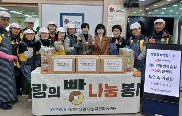 포항시 평생학습원 여성자원활동센터는 지난 14일 설 명절을 앞두고 포항시장애인복지관에서 ‘사랑의 빵 전달식’을 진행했다. 이번 행사는 명절을 맞아 장애인과 지역 취약 계층에게 따뜻한 마음을 전하기 위해 마련됐다. 이날 전달된 빵은 여성문화관 ‘소소마켓’ 회원들이 직접 만든 것으로, 여성자원활동센터 ‘만월팀’이 복지관에 전달하며 나눔의 의미를 더했다.특히 만월팀은 빵 전달식과 함께 국수 봉사활동도 진행했다. 복지관을 찾은 장애인과 지역 주민들에게 따뜻한 한 끼를 제공했다. 포항시장애인복지관 관계자는 “설 명절을 앞두고 뜻깊은 나눔을 실천해 준 여성자원활동센터 만월팀과 빵앤맘즈 회원들께 감사드린다”며 “복지관도 지역사회와 상생하는 문화 확산을 위해 위해 노력하겠다”고 말했다.조현미 평생학습원장은 “이번 빵 나눔과 국수 봉사는 단순한 음식 전달을 넘어 따뜻한 마음을 나누는 소중한 자리였다”며 “앞으로도 평생학습원은 여성자원활동센터와 협력해 지역사회 봉사 지원을 이어가겠다”고 전했다.
