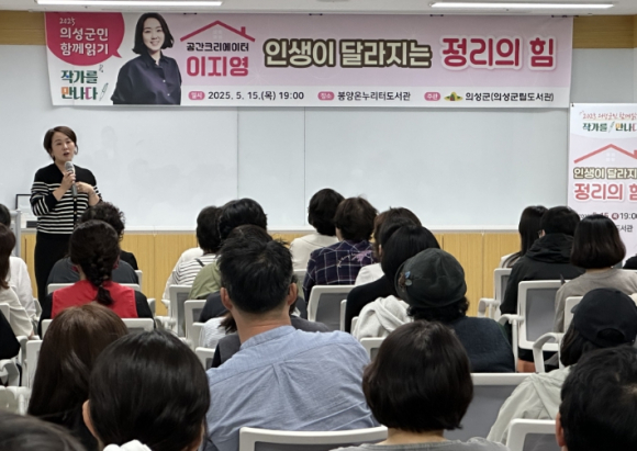 의성군은 지난 5월 15일 오후 7시, 봉양온누리터도서관 4층 온누리홀에서 공간 크리에이터 이지영 대표의 “인생이 달라지는 정리의 힘”을 주제로 저자강연회를 개최했다고 밝혔다. 이번 저자 강연은 주제별 유명 작가를 초청하여 독서와 친밀감을 형성할 수 있도록 마련된 의성군의 독서진흥사업 `2025 의성군민 함께읽기 작가를 만나다`의 두 번째 강연이다. 이지영 대표는 tvN`신박한 정리`프로그램에서 소개된 정리정돈 방법을 보다 심도 있게 다루며, 자신이 살아온 경험과 노하우를 바탕으로 정리정돈을 통해 삶의 효율성을 높이고 활력을 불어넣는 방법을 소개했다. 김주수 의성군수는 “이번 저자강연을 통해 의성군민들의 일상에 긍정적인 변화와 활력을 더할 수 있는 뜻깊은 시간이 되기를 바란다”라며 “앞으로도 작가와의 만남을 통해 삶의 위로와 영감을 얻는 시간이 되길 바란다”라고 말했다.총 7회차로 운영하는 ‘2025 의성군민 함께읽기 작가를 만나다’는 매월 1일부터 선착순 접수를 받으며 해당 도서관 방문 및 전화 또는 의성군 통합예약서비스를 통해 접수할 수 있다.