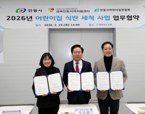 안동시는 2월 19일 2026년 어린이집 식판 세척사업의 원활한 추진을 위해 경북안동지역자활센터, 안동시어린이집연합회와 업무협약을 체결했다. 이날 협약식에는 권기창 안동시장을 비롯한 관계자들이 참석해 영유아 건강 보호와 보육환경 개선, 지역 일자리 창출을 위한 협력체계 구축을 약속했다.어린이집 식판 세척사업은 관내 51개소 어린이집 1,900여 명의 아동이 참여를 신청했으며, 2026년 3월부터 12월까지 추진된다. 총 2억 원(지방소멸대응기금)을 투입해 사용한 식판을 전문 세척․살균․소독한 뒤 재배송하는 방식으로 운영된다.이번 협약에 따라 안동시는 사업을 총괄하며 보조금 지급과 행정 지원을 담당한다. 수행기관인 경북안동지역자활센터는 에코워싱안동 사업단 인력 12명을 배치해 식판 수거부터 세척, 포장, 배송까지 전 과정을 수행하고, 어린이집은 일정 준수와 위생적 관리에 협조하게 된다.이를 통해 전문 세척․살균 시스템을 갖춘 위생 관리 체계를 구축함으로써 식중독 및 감염병 예방 효과를 높이고, 급식 위생 수준을 한층 강화할 것으로 기대된다. 또한 보육교직원과 학부모의 부담을 동시에 완화해 보육 서비스의 질을 향상시키는 한편, 지역 일자리 창출에도 기여할 전망이다.권기창 안동시장은 “이번 협약은 아이들의 건강과 안전을 지키는 동시에 지역과 상생하는 의미 있는 출발”이라며 “앞으로도 공공보육의 질을 높이고 아이 키우기 좋은 안동을 만드는 데 최선을 다하겠다”고 밝혔다.