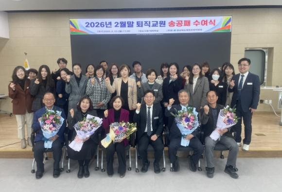 예천교육지원청은 2026년 2월 23일 교육지원청 대회의실에서 ‘2026년 2월말 퇴직교원 송공패 수여식’을 개최하고, 교육 현장에서 오랜 시간 헌신과 열정을 다해온 퇴직 교원들의 노고에 감사를 표했다. 이번 수여식은 오랜 시간 동안 사명감을 가지고 예천교육 발전에 기여한 교원들의 공로를 기리고, 새로운 출발을 응원하기 위해 마련됐다. 2026년 2월말 정년 및 명예퇴직을 맞이한 예천 관내 교원 10명과 교육지원청 직원들이 참석한 자리에서 송공패가 수여됐으며, 각 퇴직 교원의 퇴임 소회 발표의 시간도 마련됐다. 김성중 교육장은 인사말에서 ˝수십 년간 오직 제자 사랑의 마음으로 교단을 지켜오신 선생님들의 헌신적인 삶에 깊은 존경과 감사를 표한다”며, “교직을 떠나시더라도 그동안 쌓아온 풍부한 경험과 지혜로 교육계의 든든한 조언자가 되어주시길 부탁드린다”고 전했다. 예천교육지원청은 앞으로도 퇴직 교원들이 쌓아온 교육적 경험과 전문성이 지역 사회에 환원될 수 있도록 다양한 네트워크를 지원하고, 교권 존중과 스승 공경의 문화를 확산시키는 데 앞장설 계획이다.