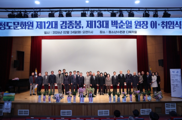청도문화원(원장 박순열)은 24일 청소년수련관 다목적홀에서 문화원 관계자와 지역 기관단체장, 문화예술인 등 200여 명이 참석한 가운데 제12대·제13대 원장 이·취임식을 개최했다.이날 행사는 지역문화 발전에 헌신해 온 김종봉 전임 원장의 노고를 기리고, 박순열 신임 원장의 새로운 출발을 축하하는 자리로 마련됐다.김종봉 전임 원장은 이임사에서 “청도문화원은 지역의 역사와 전통을 계승하며 군민과 함께 성장해 온 소중한 문화공동체”라며 “앞으로도 문화원이 지역사회의 중심에서 군민의 자긍심을 높이는 역할을 이어가길 바란다”고 소회를 밝혔다.이어 취임한 박순열 신임 원장은 “문화원은 단순한 문화시설이 아니라 지역의 역사와 정신을 지키고 계승하는 중심축”이라며 “전통문화의 보존과 계승은 물론 시대 변화에 부응하는 새로운 문화콘텐츠를 발굴해 군민과 함께 호흡하는 열린 문화원을 만들어 가겠다”고 포부를 밝혔다.또한 “문화예술교육 확대와 생활문화 활성화, 청소년·청년 문화 참여 기반 강화를 통해 문화가 일상이 되는 청도를 실현하겠다”며 “지역 문화예술인과 단체, 군민 여러분의 적극적인 관심과 참여를 부탁드린다”고 강조했다.이날 참석자들은 청도문화원의 새로운 도약과 지역문화의 발전을 함께 기원하며 힘찬 박수로 신임 원장의 출발을 응원했다.김하수 청도군수는 축사를 통해 “청도문화원은 우리 지역의 역사와 전통을 지키는 소중한 문화 거점”이라며 “이번 이·취임식을 계기로 문화원의 역할이 더욱 확대되어 군민이 일상 속에서 문화를 누리는 문화도시 청도로 한 단계 더 도약하길 기대한다”고 밝혔다. 이어 “군에서도 문화예술 기반 확충과 문화원 활성화를 위해 행정적·재정적 지원을 아끼지 않겠다”고 덧붙였다.