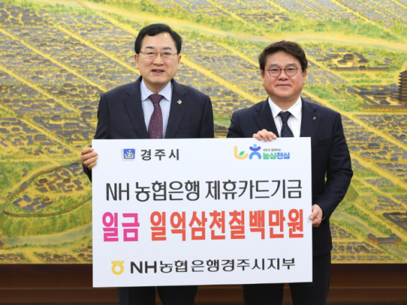 경주시는 25일 시청 대외협력실에서 NH농협은행 경주시지부(지부장 황대화)로부터 지난해 제휴카드 사용에 따른 적립기금 1억 3,715만 5,240원을 전달받았다.이번 적립기금은 경주시와 NH농협은행 간 제휴카드 약정에 따라 조성된 것으로, 2025년 한 해 동안 시가 사용한 법인카드, 보조금카드, 공무원복지카드 이용금액의 0.3~1.0%가 포인트로 적립돼 마련됐다.시는 예산 집행의 투명성과 재정 운영의 효율성을 높이기 위해 전 부서를 대상으로 카드 사용을 적극 권장해 왔으며, 이에 따라 매년 안정적인 규모의 적립기금을 확보하고 있다.이날 전달받은 기금은 시 세입으로 처리돼 시민 복지 증진과 지역사회 발전을 위한 각종 시책사업 재원으로 활용될 예정이다.주낙영 경주시장은 “제휴카드 적립기금은 예산 집행의 투명성을 높이는 동시에 시민을 위한 소중한 재원을 마련했다는 점에서 의미가 크다”라며, “앞으로도 농협은행 경주시지부와의 협력을 더욱 강화해 시민 편익 증진과 지역 상생에 더욱 힘쓰겠다”고 밝혔다.