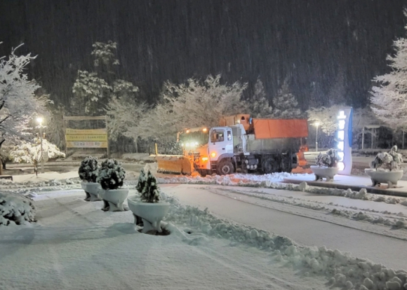 전날 내린 눈의 영향으로 도로 결빙 우려가 이어지자 경주시가 25일 새벽까지 제설작업을 벌이며 출근길 안전 확보에 나섰다.경주시에 따르면 24일 내린 눈으로 석굴암 일대에는 최대 8.0㎝의 적설이 기록됐다. 25일 오전 7시 기준 기온은 6℃다.시는 24일 오후 1시부터 산내면·서면·현곡면·양남면·내남면·석굴로 일대에서 제설작업을 시작했다. 같은 날 오후 5시부터는 작업 범위를 관내 전역으로 확대했다.25일 오전 5시부터는 출근길 대비를 위해 결빙 우려 구간을 중심으로 제설재를 재살포했다.제설 작업은 △지방도 921호선(산내 대현) △군도 11호선(서면 천촌~산내 우라) △석굴로·불국로 △지방도 904호선(현곡 남사재·건천 화천~내남 비지) △군도 16호선(산내 감산) △군도 15호선(마우나오션리조트) △지방도 909호선(서면) △군도 5호선(내남 박달) △태종로·산업로 및 주요 교량·지하차도 등 관내 간선도로를 중심으로 진행됐다.한때 전면 통제됐던 △불국로 장항 구간(불국사 정문주차장~한수원 본사) △지방도 921호선(문복로 334~대현보건진료소) △군도 15호선(상계리 마을회관~마우나오션CC) △지방도 904호선(현곡 남사~영천 고경) △군도 11호선(서면 천촌~산내 우라) 구간은 현재 모두 통제가 해제됐다.경주시는 이번 제설에 덤프 33대와 굴삭기 10대 등 장비 43대를 투입했다. 이를 위해 공무원과 공무직 등 54명이 동원됐으며, 소금 97t과 염수 24t을 살포했다.주낙영 경주시장은 “기온이 떨어질 경우 도로 결빙 가능성이 있는 만큼 출근길 차량 운행 시 감속 운행 등 안전에 각별히 유의해 달라”며 “시민 불편을 최소화하기 위해 취약 구간 제설과 예찰 활동을 지속하겠다”고 말했다.