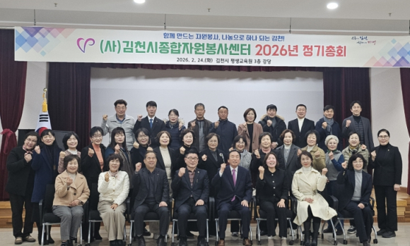 (사)김천시종합자원봉사센터는 지난 24일, 김천시평생교육원 3층 강당에서 2026년 정기총회를 개최했다. ‘함께 만드는 자원봉사, 나눔으로 하나되는 김천!’이라는 주제로 열린 이날 총회에는 김정호 이사장을 비롯한 센터 임원진 및 정회원 40여 명이 참석했으며, 회의는 성원 보고, 개회 선언, 안건 심의 순서로 진행됐다. 특히, 본격적인 안건 심의에 앞서 참석자들은 간단한 인사말을 나누며 자원봉사 활성화에 대한 의지를 다지는 시간을 가졌다. 심의 안건으로는 2025년 사업실적과 결산, 2026 예산 및 사업계획 등 총 2건의 의안이 상정됐다. 사무국장의 제안 설명 이후 임·회원들의 질의와 의견 교환을 거쳐 모든 안건은 원안대로 의결됐다. 김정호 이사장은 “자원봉사자들의 헌신과 참여에 깊이 감사드린다.”라며, “올해에도 따뜻한 나눔과 봉사가 지역 곳곳에 확산될 수 있도록 힘을 모아주시길 바란다.”라고 당부하며, 산회를 선포했다.