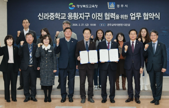 경주시와 경상북도교육청이 용황지구 중학교 이전을 추진한다. 통학 불편 해소와 교육환경 개선을 위한 조치다.경주시는 경상북도교육청과 ‘신라중학교 용황지구 이전을 위한 업무협약’을 체결했다고 2일 밝혔다.협약식은 지난달 27일 경주교육지원청에서 열렸으며, 주낙영 경주시장과 임종식 경상북도교육감을 비롯한 양 기관 관계자들이 참석했다. 참석자들은 신라중학교의 원활한 이전 추진과 지역 교육여건 개선을 위해 긴밀히 협력하기로 했다.현재 황성동에 위치한 신라중학교는 건립 40년이 지나 시설 노후화 문제가 꾸준히 지적돼 왔다. 대형 도로와 인접해 있어 학생들의 교통사고 위험에 대한 우려도 이어졌다.특히 공동주택이 밀집한 용황지구에는 중학교가 없어 학생들이 원거리 통학을 해야 하는 불편을 겪어왔다. 이는 지역 주민들의 대표적인 숙원 과제로도 꼽혀왔다.시는 주민 요구를 반영해 경북교육청과 수차례 협의를 이어왔으며, 이번 협약 체결을 계기로 용황지구 내 유휴 학교 부지로의 이전 추진에 속도를 낼 수 있는 기반을 마련했다.협약에 따라 경상북도교육청은 신라중학교 이전 절차를 총괄하고 관계 기관 협의를 주도한다. 경주시는 관련 행정 절차에 적극 협조하고 지역 주민의 이해와 협력 확보를 지원할 계획이다.시는 이번 이전이 단순한 학교 위치 변경을 넘어 용황지구의 정주 여건을 개선하고, 미래형 교육환경을 갖춘 학교로 도약하는 전환점이 될 것으로 기대하고 있다.주낙영 경주시장은 “오랜 시간 기다려온 용황지구 중학교 이전 소식을 전하게 돼 뜻깊게 생각한다”며 “아이들이 보다 안전하고 쾌적한 환경에서 학업에 전념할 수 있도록 시 차원의 행정 역량을 집중해 사업이 차질 없이 추진되도록 하겠다”고 밝혔다.