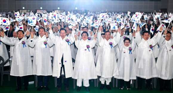 경상북도는 1일 오전 10시, 구미복합스포츠센터에서 ‘제107주년 3·1절 기념식’을 거행하며, 1919년 전국으로 울려 퍼졌던 3·1 운동의 숭고한 정신을 되새기고, 더 나은 미래로 도약하기 위해 상생과 화합의 의미를 공유했다. 이날 기념식에는 이철우 도지사를 비롯해 박성만 도의회 의장, 국회의원, 보훈 단체장, 독립유공자 유족 및 도민 등 800여 명이 참석해 순국선열들의 희생과 헌신을 기렸다.기념식은 개식 선언을 시작으로 국민의례, 독립선언서 낭독, 유공자 표창 수여, 기념사, 3·1절 노래 제창, 만세삼창 순으로 엄숙하게 진행됐다. 특히, 국민의례 중 애국가 제창 순서에서는 이 지사와 도청 간부 공무원들이 직접 무대에 올라 함께 제창했다. 다음으로, 독립선언서 낭독에서는 107년 전 자주독립을 선포했던 뜨거운 순간을 재현했고, 이어진 독립유공자 포상에서는 고(故) 이규각 애국지사에게 추서된 건국훈장 애족장을 장남 이봉석씨(안동)에게 전수했다. 또한 국가상징 선양 유공자로 선정된 도민 4명과 공무원 4명에게는 도지사 표창을 수여했다.기념식의 마지막은 참석자 전원이 ‘3·1절 노래’를 함께 부른 뒤, 태극기를 흔들며 대한민국의 번영과 도민의 화합을 기원하는 ‘만세삼창’을 외치며 행사의 대미를 장식했다. 경상북도는 이번 기념식을 통해 도민들이 3·1 운동의 역사적 의의를 고취하고, 자긍심을 바탕으로 지역 발전의 동력을 얻는 계기가 될 것으로 기대하고 있다.이 지사는 기념사를 통해 “죽음 앞에서도 끝내 독립을 이뤄내 오늘의 대한민국을 있게 한 선열들께 깊은 존경과 감사의 마음을 올려드린다”고 전하며, “선열들께서 보여주신 하나 됨과 희생정신을 이어받아 다음 세대와 대한민국의 새로운 내일을 위해 경상북도가 맡은 역할과 책임을 충실히 수행해 나가겠다”고 말했다.